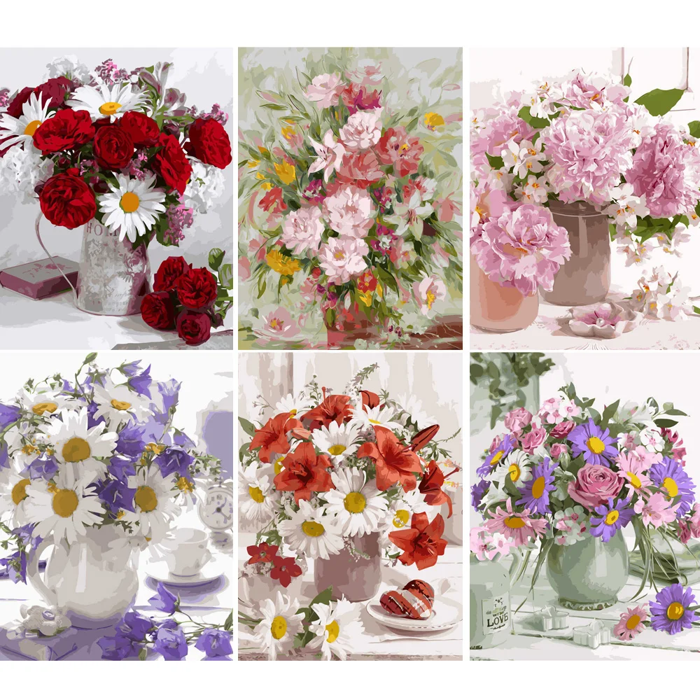 Искусственная роспись по номерам, цветы 40x50 см для взрослых, иску...