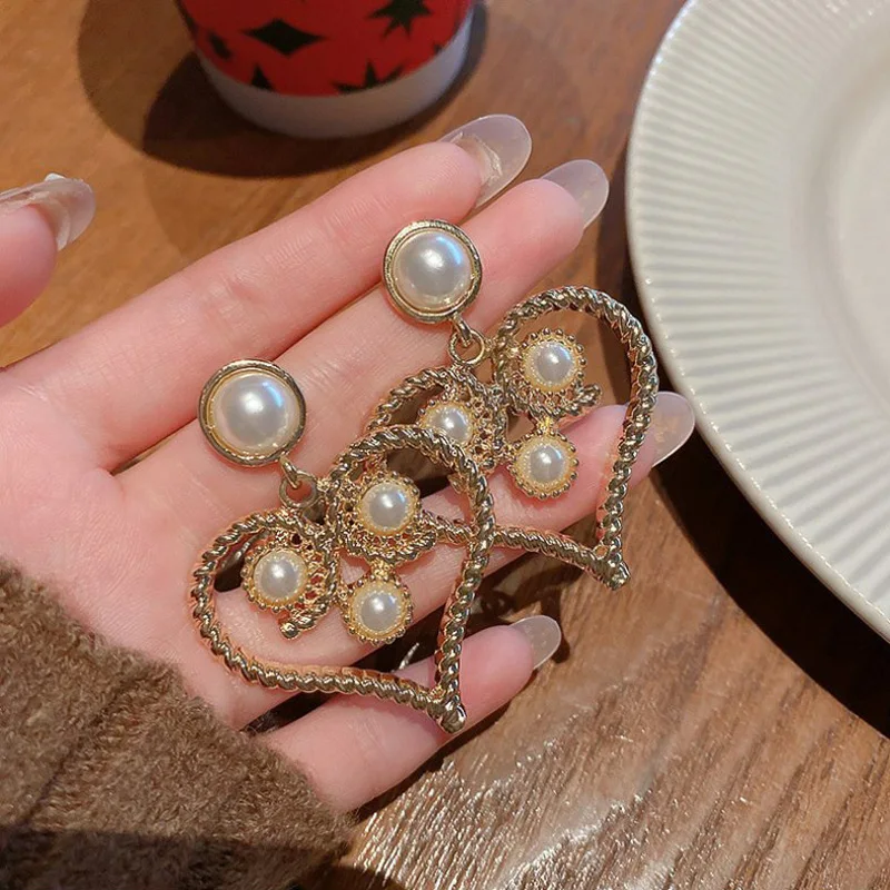 Новые модные массивные полые жемчужные серьги Love для женщин, персонализированные украшения для создания атмосферы, французские Ретро Подвесные серьги, подарок