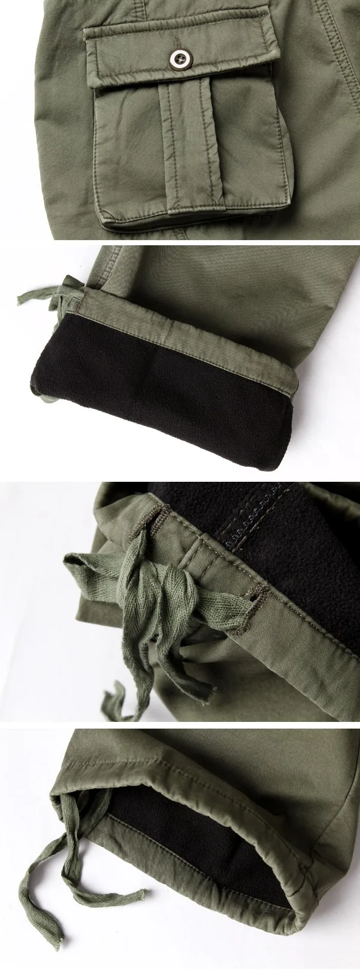 Зимние Утепленные флисовые теплые брюки-карго, тактические мужские комбинезоны, хлопковые повседневные длинные брюки в стиле милитари, теплые свободные мужские мешковатые брюки