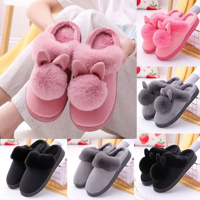 2021 новые модные осенне-зимние хлопковые тапочки, домашние тапочки с кроличьими ушками, зимняя теплая обувь, женские Симпатичные плюшевые Тапочки
