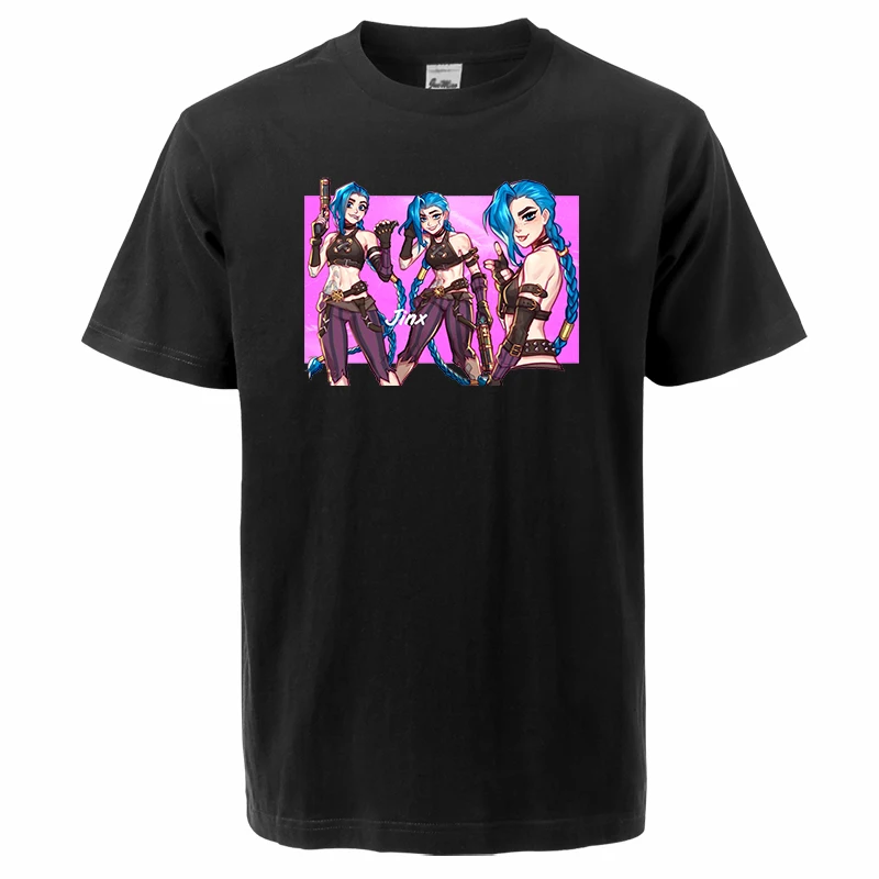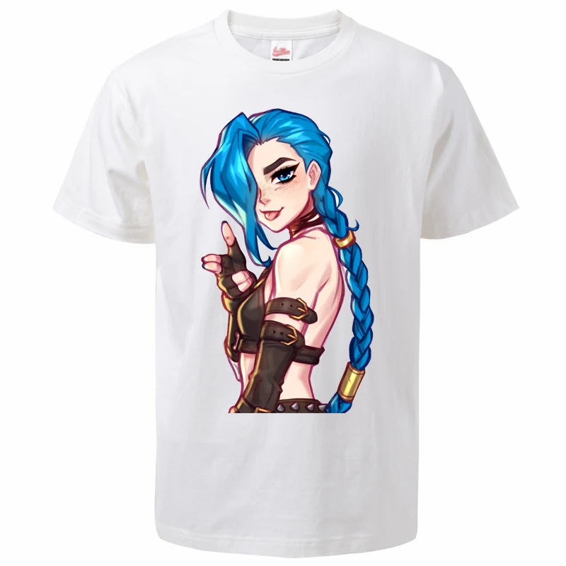 Популярная футболка Arcane с аниме мультяшным рисунком Jinx, новинка 2021, летняя футболка унисекс в стиле хип-хоп, простые футболки с круглым вырезом, одежда унисекс, хип-хоп с короткими рукавами