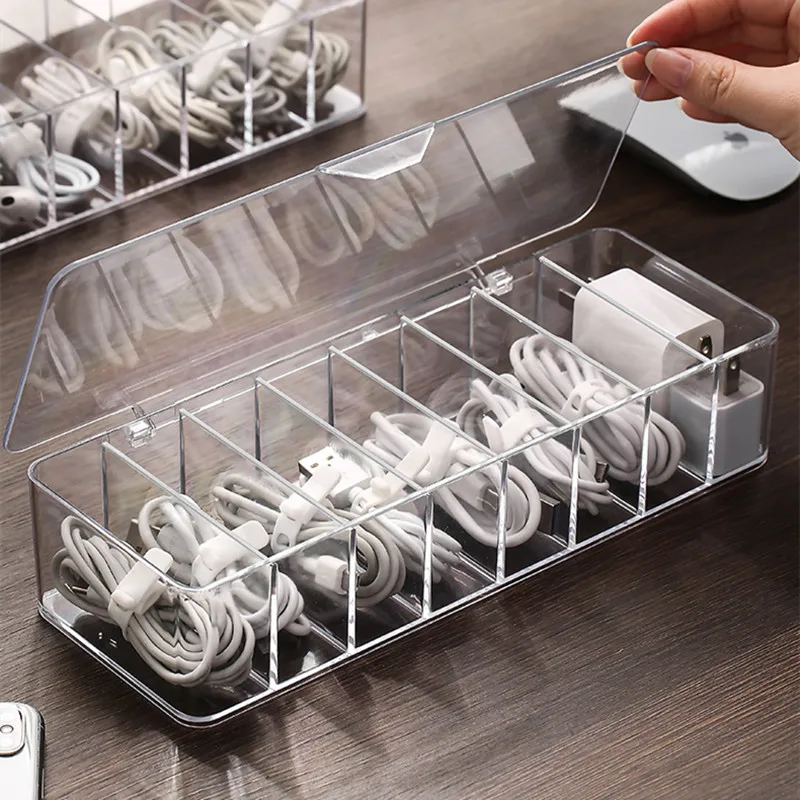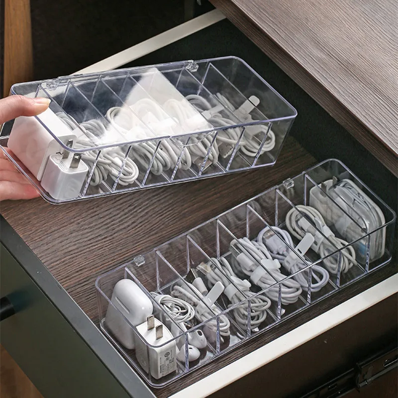 Прозрачный пластиковый контейнер для хранения кабеля, 8 ячеек