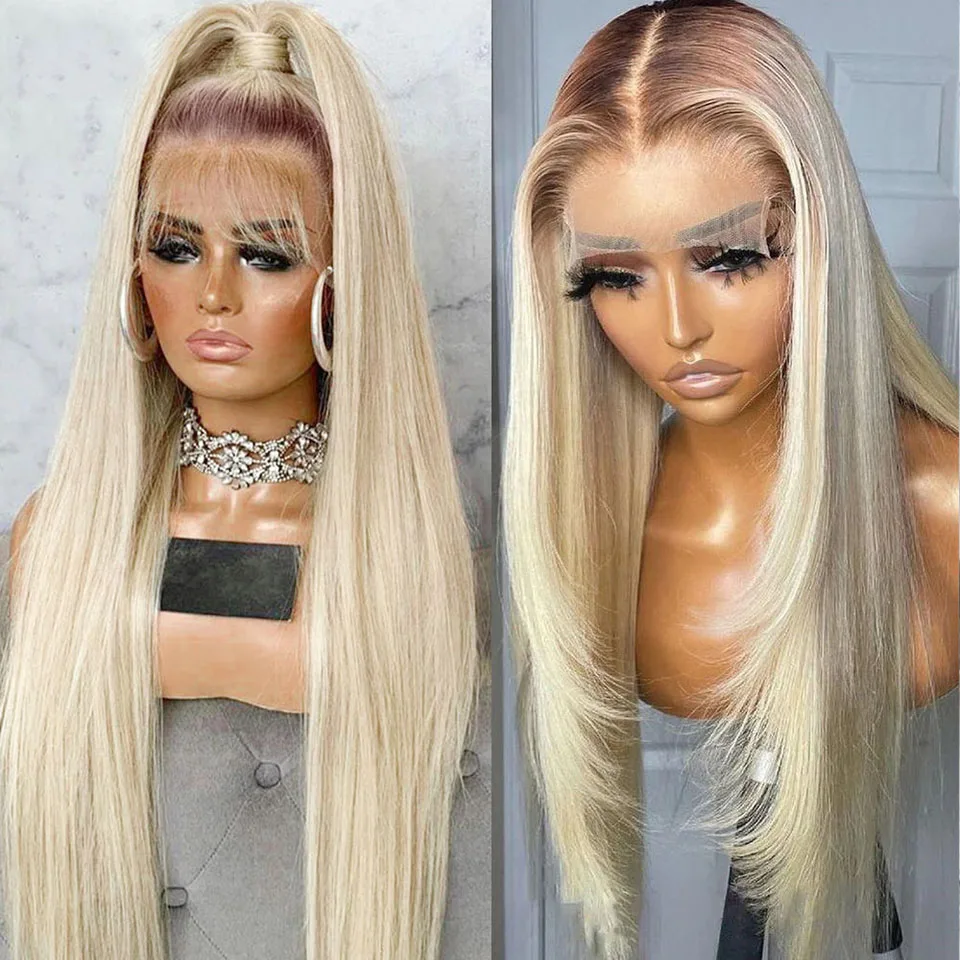Парик с глубокой кружевной передней частью 13*6, 613 цветов, шелковистый, прямой, синтетический, без клея, термостойкие волосы из натуральных волос