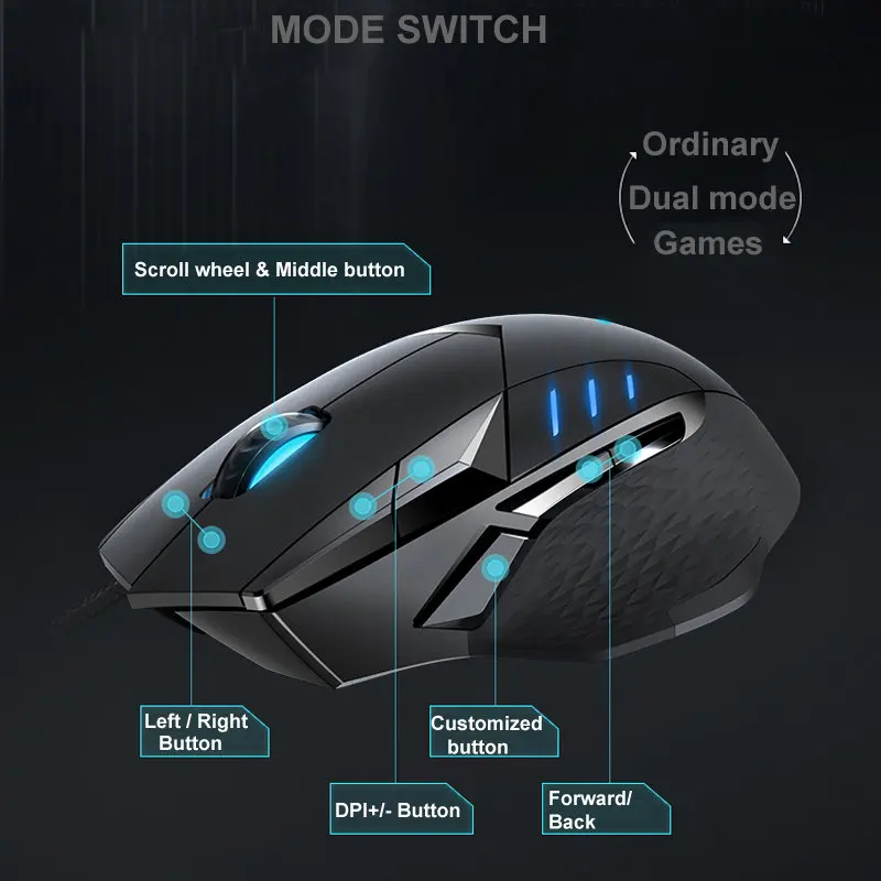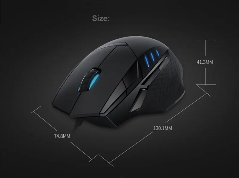 Основные характеристики:1. Новая черная технология e-sports mouse, регулируемый движок слежения высокой четкости.2. Большая мышь для правой руки3. 5 уровней регулировки DPI(200-6200DPI)4. СВЕТОДИОДНЫЙ многоцветный светильник5. Оптический игровой датчик PMW33276. Прочная микро-ведьмы с 60 миллионов времена жизни7. 10 программируемых кнопокТовар:Эргономичный дизайн с 10 программируемыми кнопкамиЭта мышь, подходящая для вашей ладони, предотвращает ненужное напряжение на руке, чтобы обеспечить комфортное сцепление и приятное использование даже во время ваших самых длинных игр. Уверенность хорошая, управление лучше: ваша мышь предлагает вам 10 индивидуально настраиваемых кнопок, к которым вы можете присваивать широкий спектр функций и макросов.Встроенная память, сохранение и воспроизведениеВстроенная память для сохранения конфигурации мыши (Макро, DPI Настройка и режим дыхательный светильник) в игровом режиме. Вы можете играть так, как хотите, на любом компьютере без помощи какого-либо программного обеспечения.Регулируемая кнопка DPI в реальном времениВы можете настроить 5 DPI значений от 200-6200DPI через DPI +/-кнопки, что составляет до 6200DPI. Вы также можете +/- DPI рекурсивно с интервалом 100 DPI для удовлетворения точности различных экранов.Точная навигацияПрофессиональный игровой Оптический Двигатель с скоростью отслеживания 220 дюймов, макс. ускорение 30 г и скорость передачи данных по USB до 1000 Гц, обеспечивает точное отслеживание в любое время и в любом месте.СВЕТОДИОДНЫЙ многоцветный светильник 16 миллионов цветовЧто это делает? Становится синим, зеленым или... Мышь имеет СВЕТОДИОДНЫЙ многоцветный светильник, который позволяет настроить внешний вид вашей мыши во многих отношениях, а также в соответствии с вашими предпочтениями. Мышь имеет режим APM-светильник ing, который отражает ваши действия в минуту с эффектным светильник.Системные требования:Windows XP/Vista/7/8/10,USB портУпаковка включает:1 проводная мышь (с розничной коробкой)1x Руководство пользователя