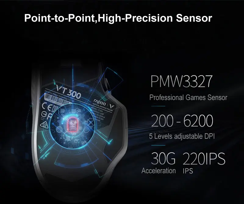 Оптическая USB-мышь Rapoo VT300, 6200DPI, 10 программируемых кнопок