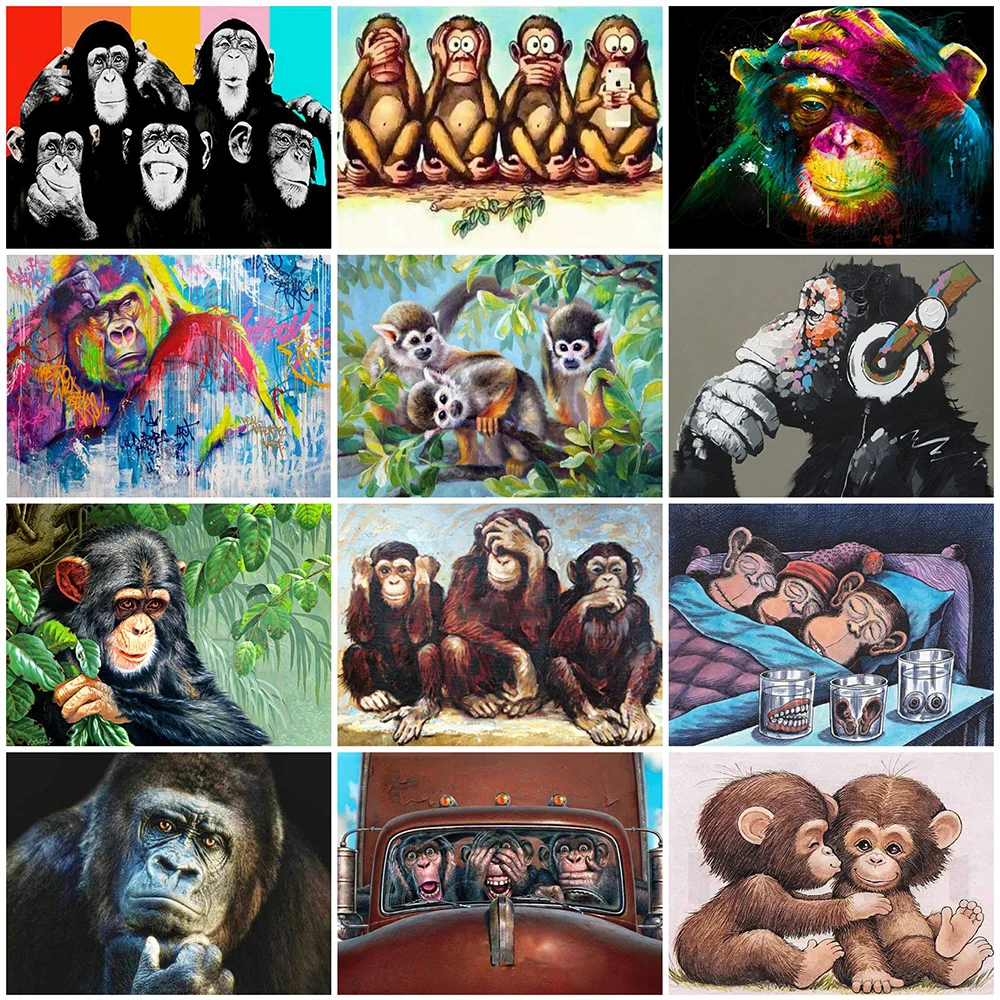 Алмазная живопись 5D "сделай сам", обезьяна, животные, стразы, Набо...