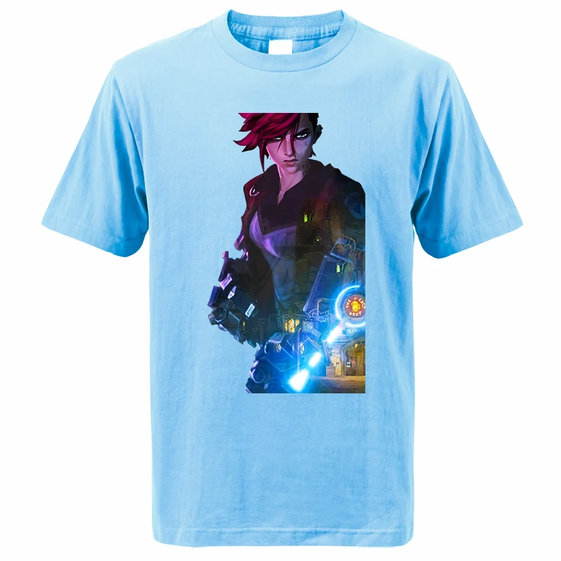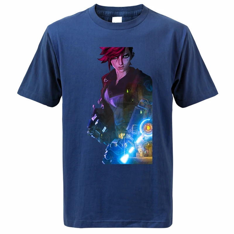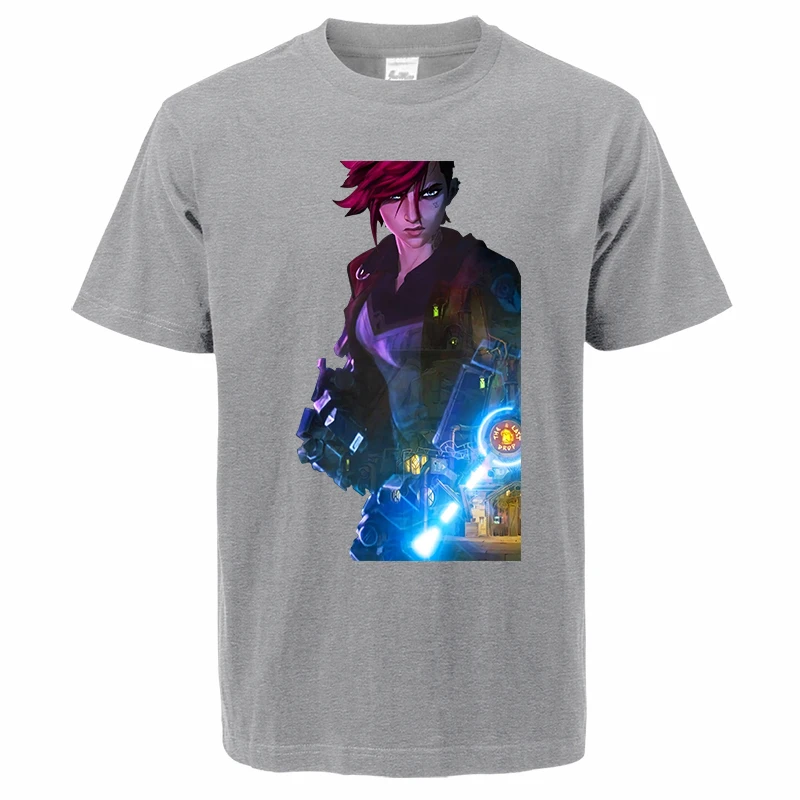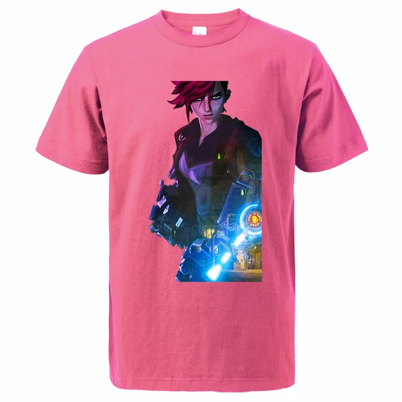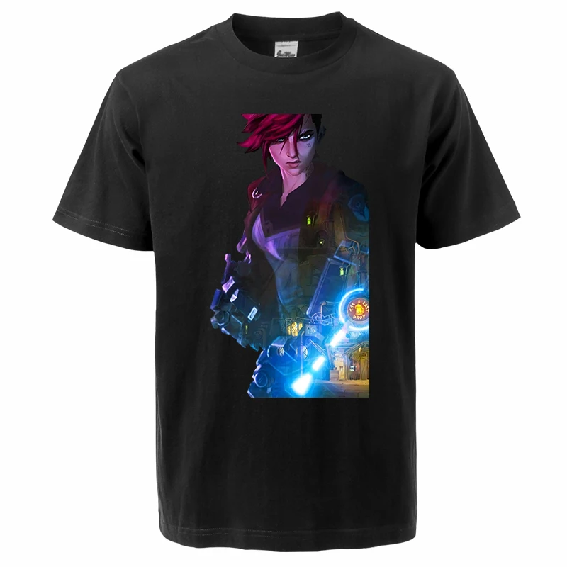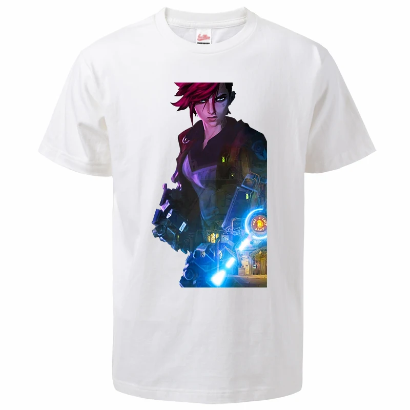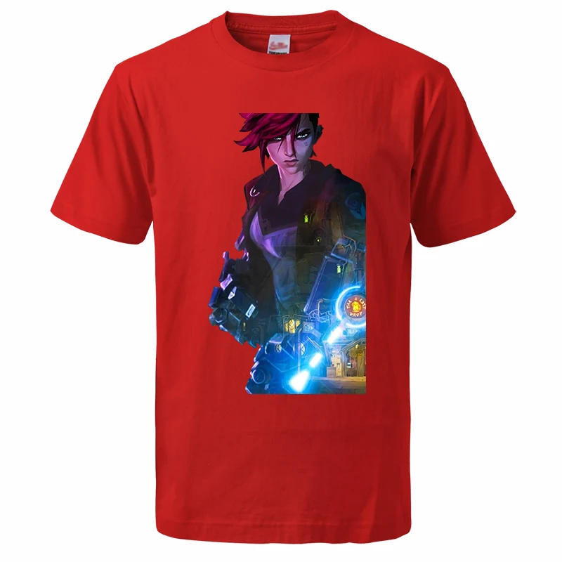 Лидер продаж, летние мужские футболки Arcane с мультяшным аниме Jinx 2021, модный топ с принтом в стиле Харадзюку, мужские Модные топы, футболки Vi Camiseta Masculina