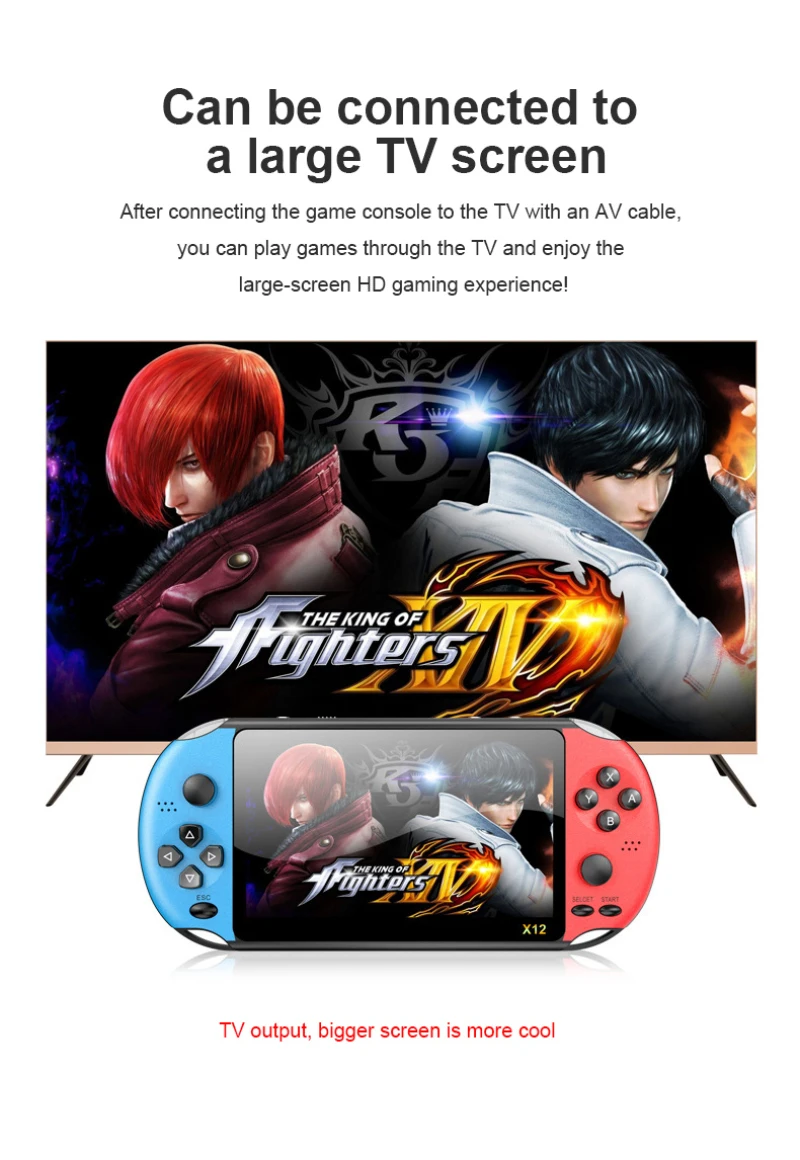 Портативная игровая консоль X12 в стиле ретро, 5,1 дюйма, портативная, 8 ГБ, Встроенные игры, 1000 + игр, портативное игровое устройство для PSP