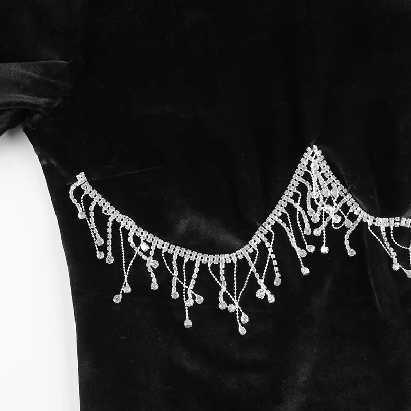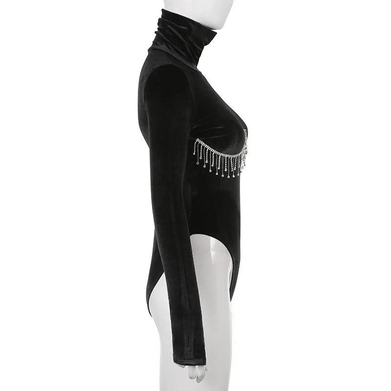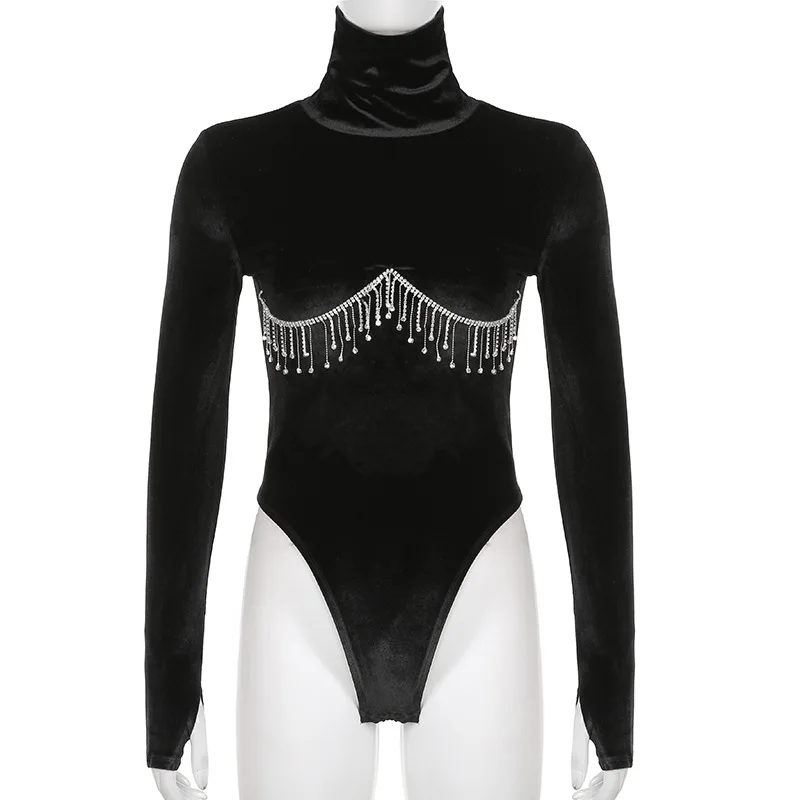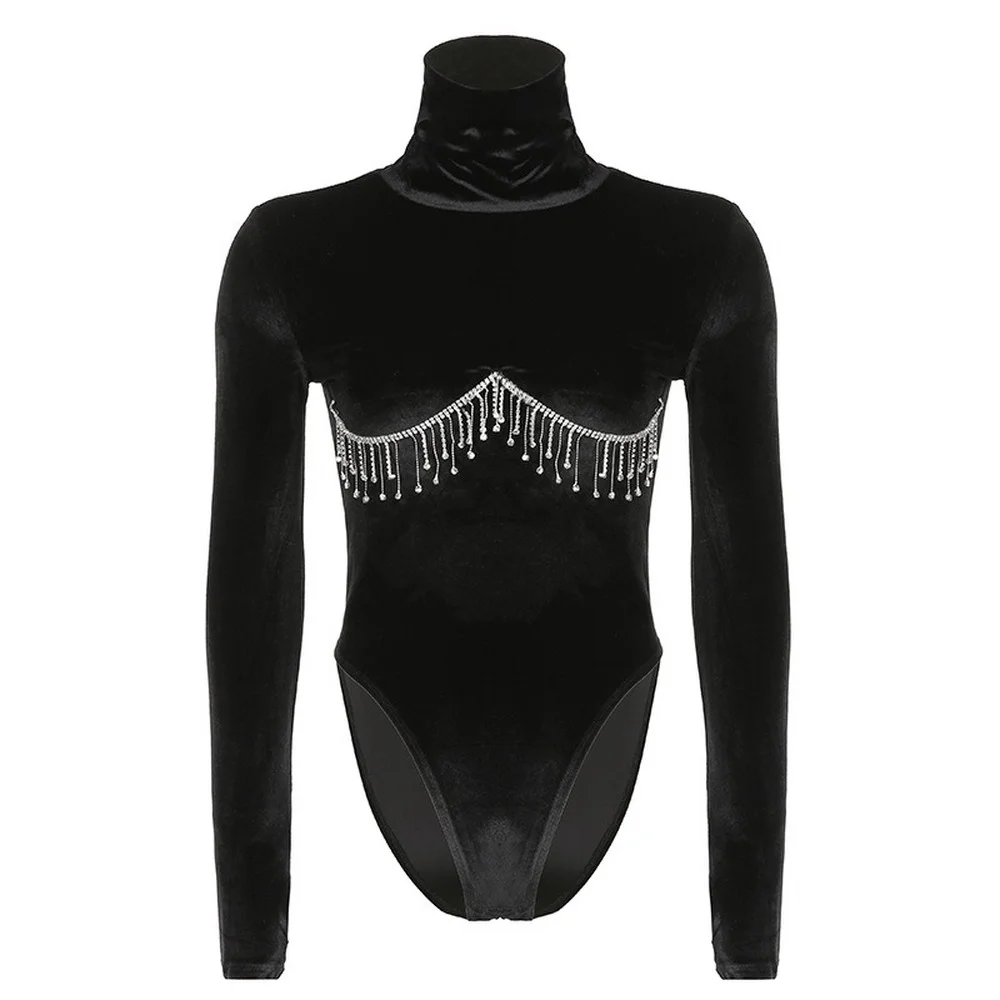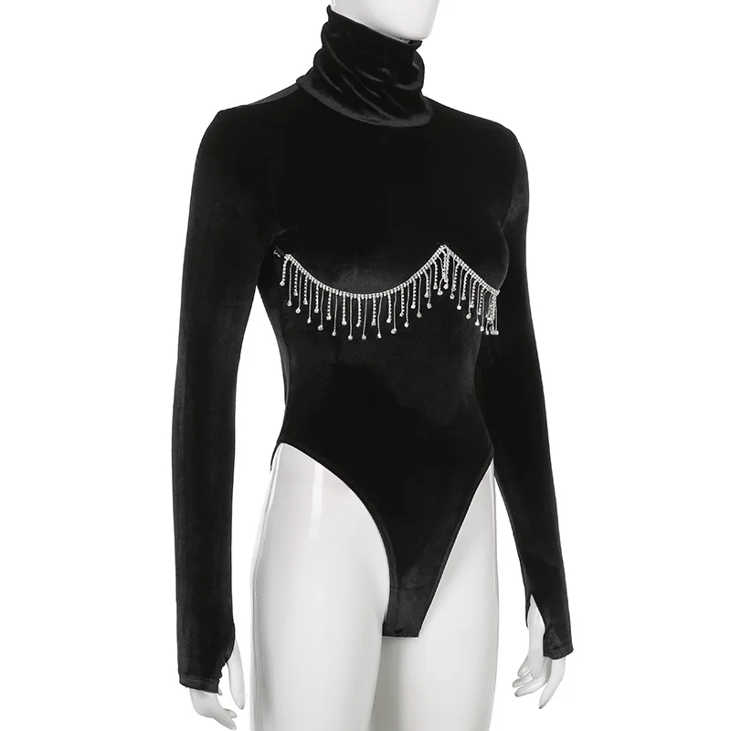 Боди с алмазной кисточкой с корсетом осень-зима 2021 Водолазка с длинным рукавом бархатные женские боди сексуальные Клубные наряды