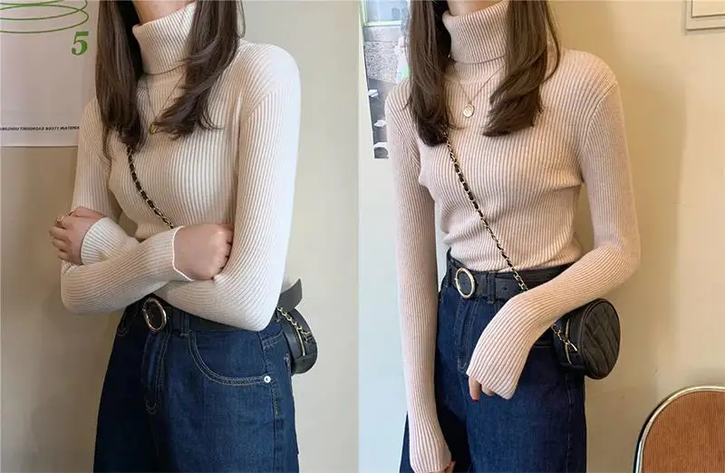 Базовый женский свитер с высоким воротником, сезон осень-зима, плотный теплый пуловер, облегающие топы, вязаный свитер в рубчик, джемпер, мягкий женский пуловер, 2021