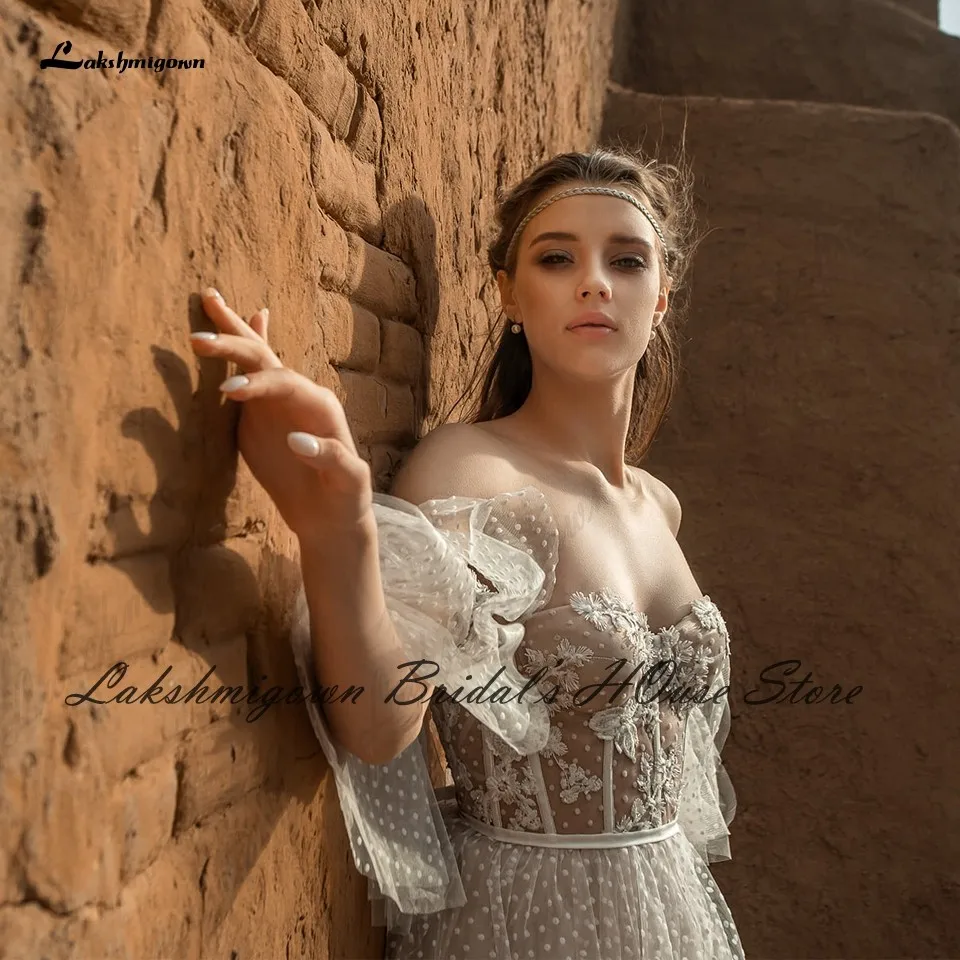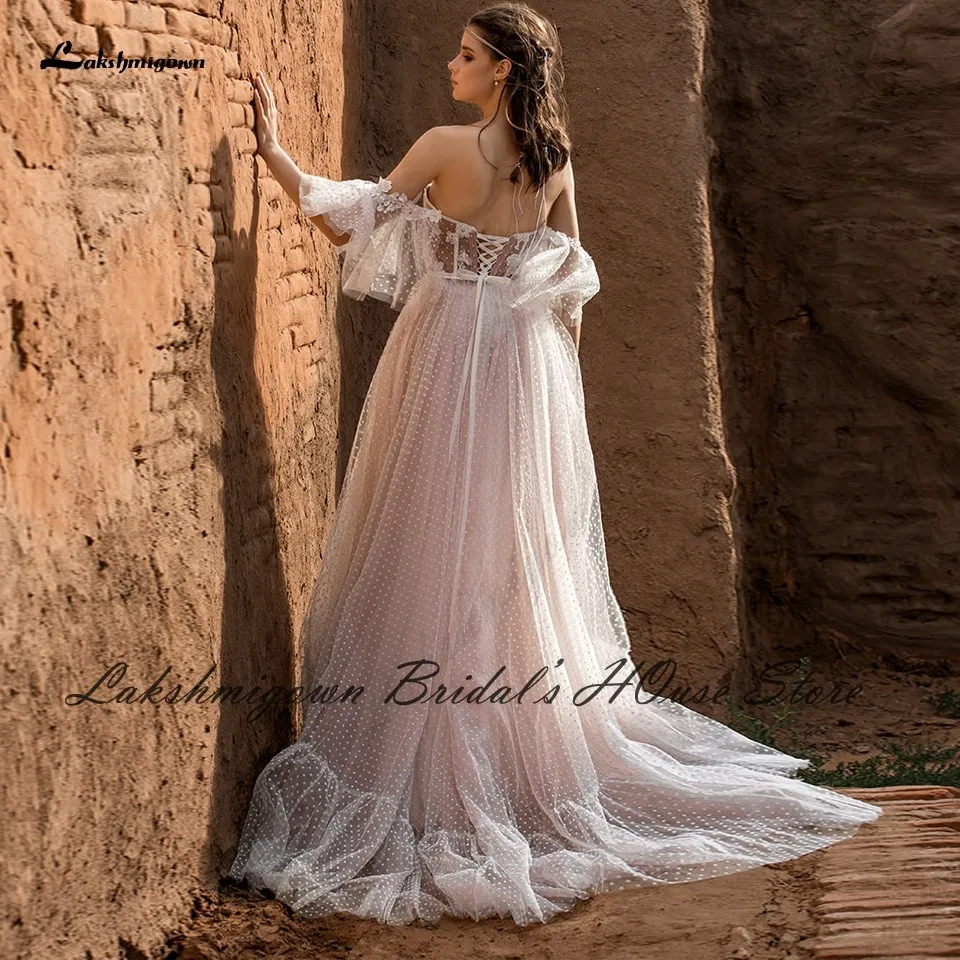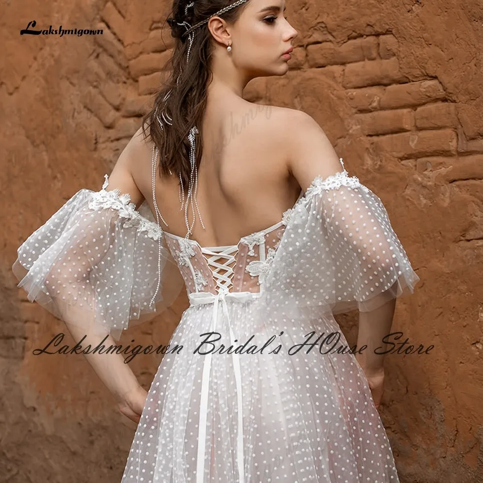 Сексуальный корсет Lakshmigown, свадебное платье в стиле бохо, платье на шнуровке с открытыми плечами, 2022