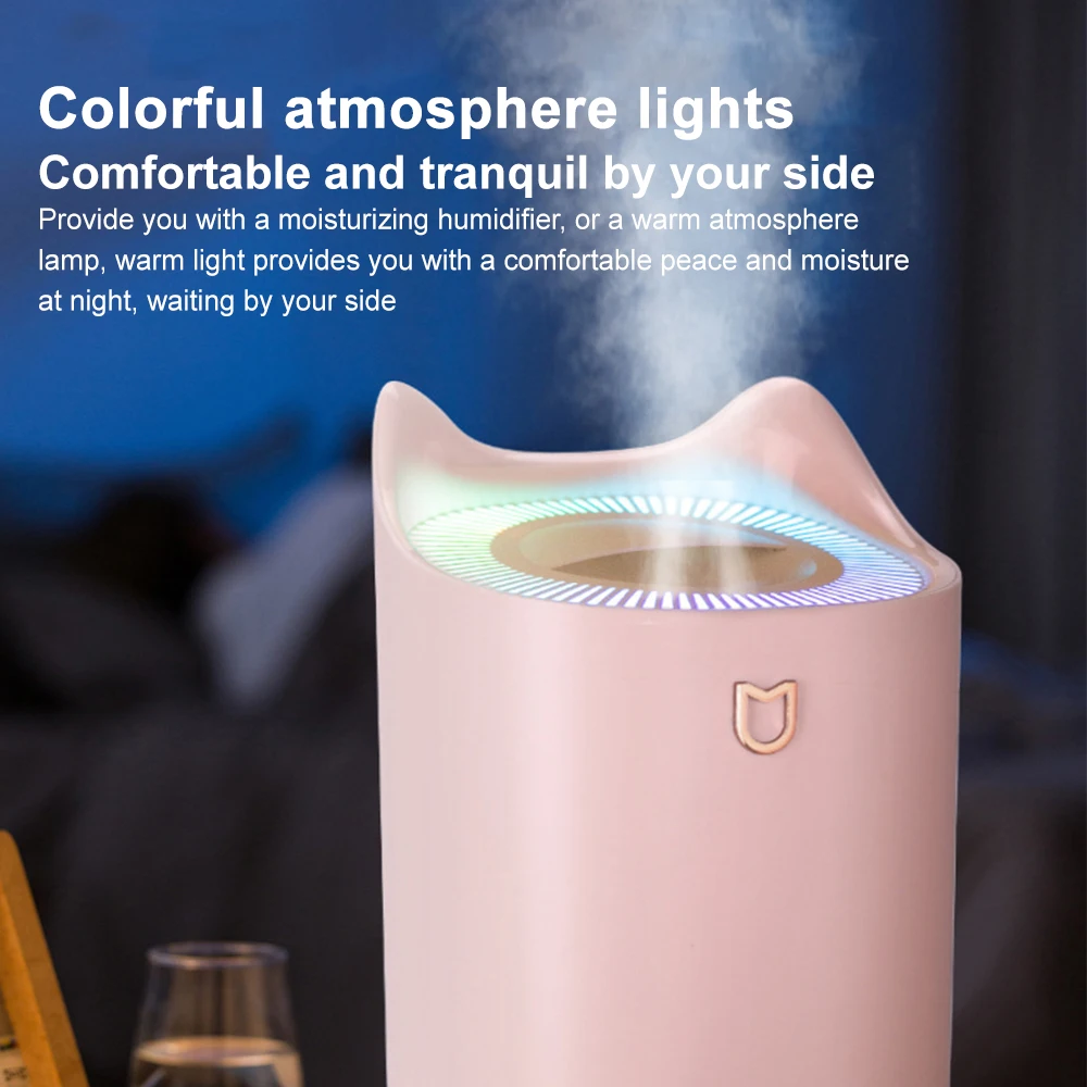 3. [красочный атмосферный светильник] Увлажнитель воздуха также имеет встроенный атмосферный светильник, который может освещать и имеет различные цвета светильник. Ночью он может не только обеспечить вам влажную и комфортную среду, но и обеспечить вас освещением, сопровождать вас, чтобы спать, и принести вам чувство безопасности.