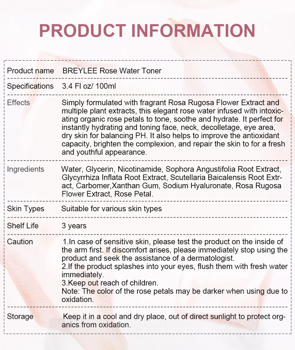 Картридж для лица BREYLEE с розовой водой, кислотный картридж для лица 10% AHA, картридж для лица, профессиональный картридж для лица для женщин 100 мл