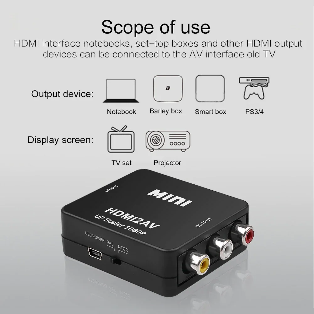 HDMI-совместимый преобразователь в RCA AVCVSB LR видеобокс HD 1080P 1920*1080 60 Гц HDMI 2 AV поддержка NTSC PAL выход HDMI в AV