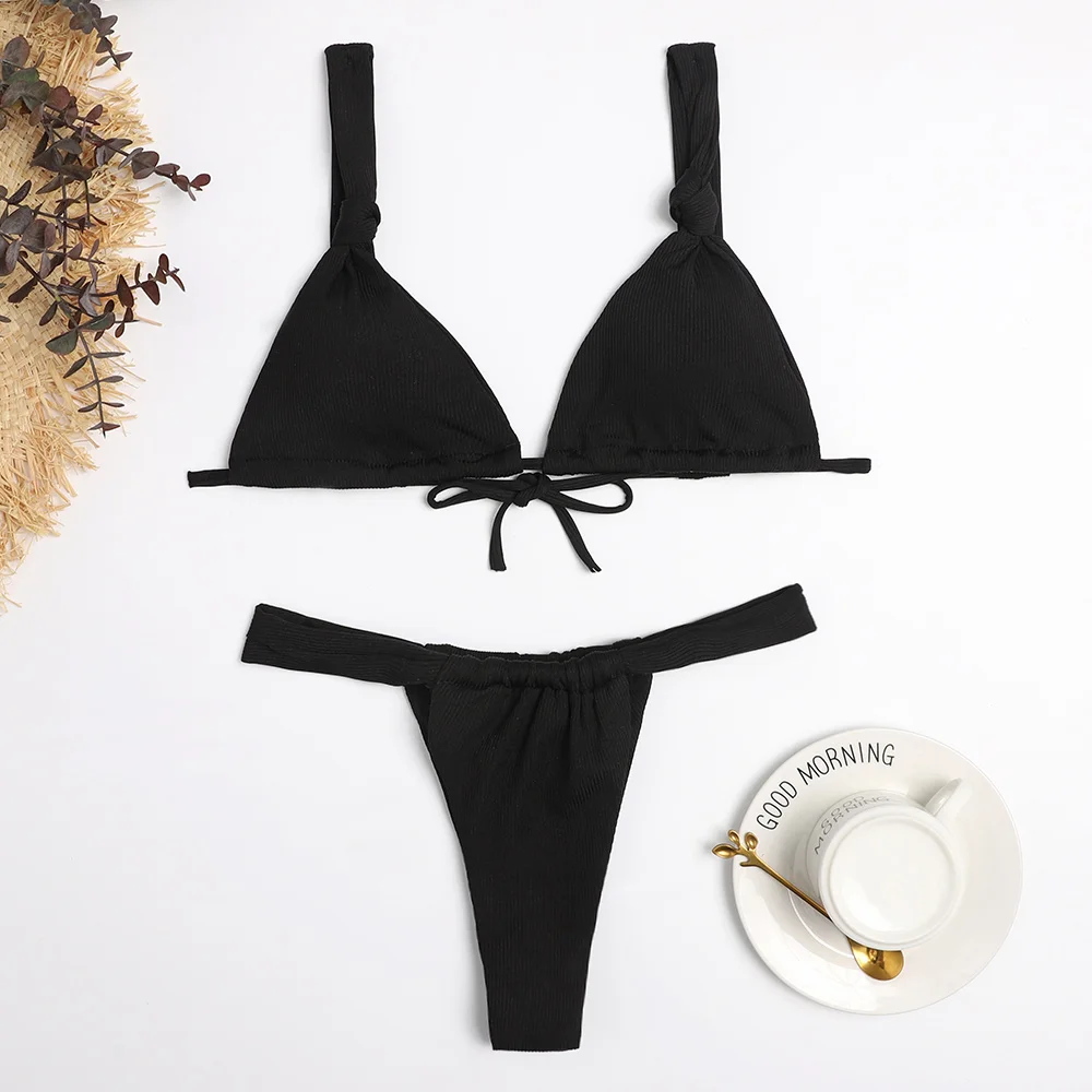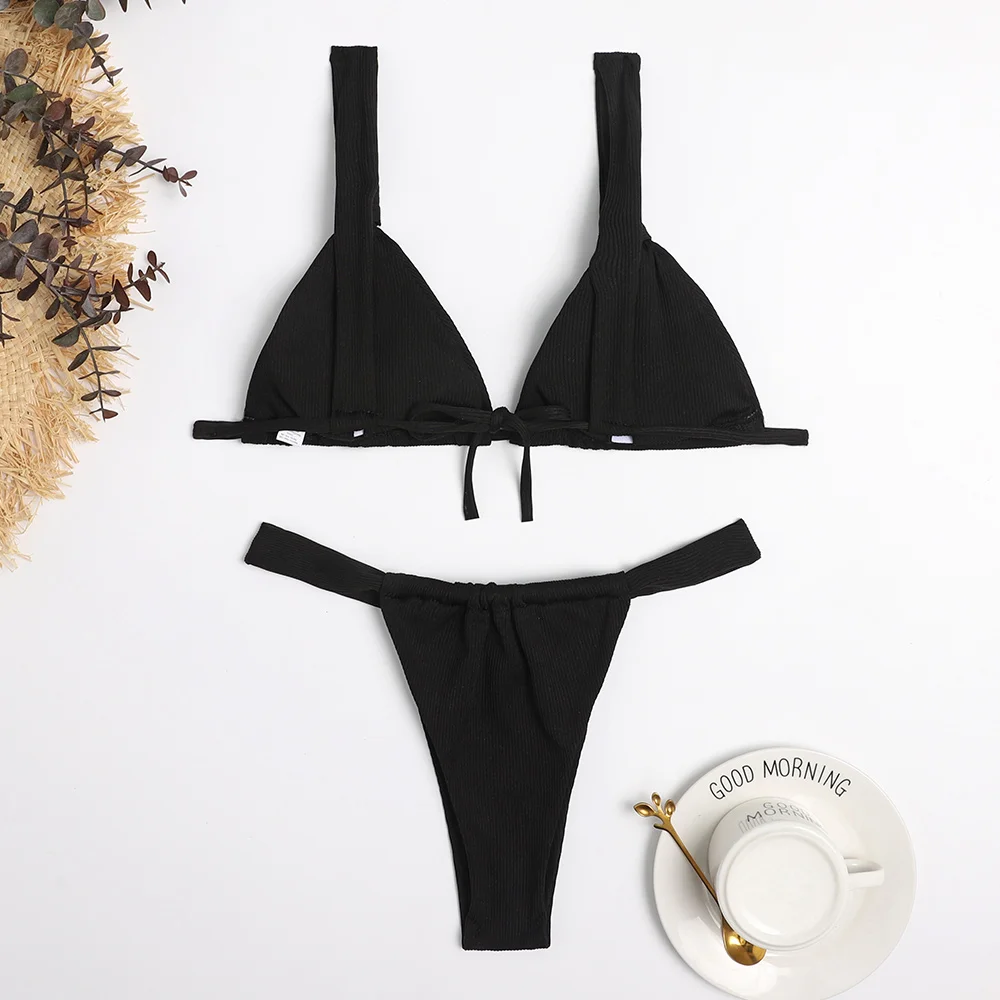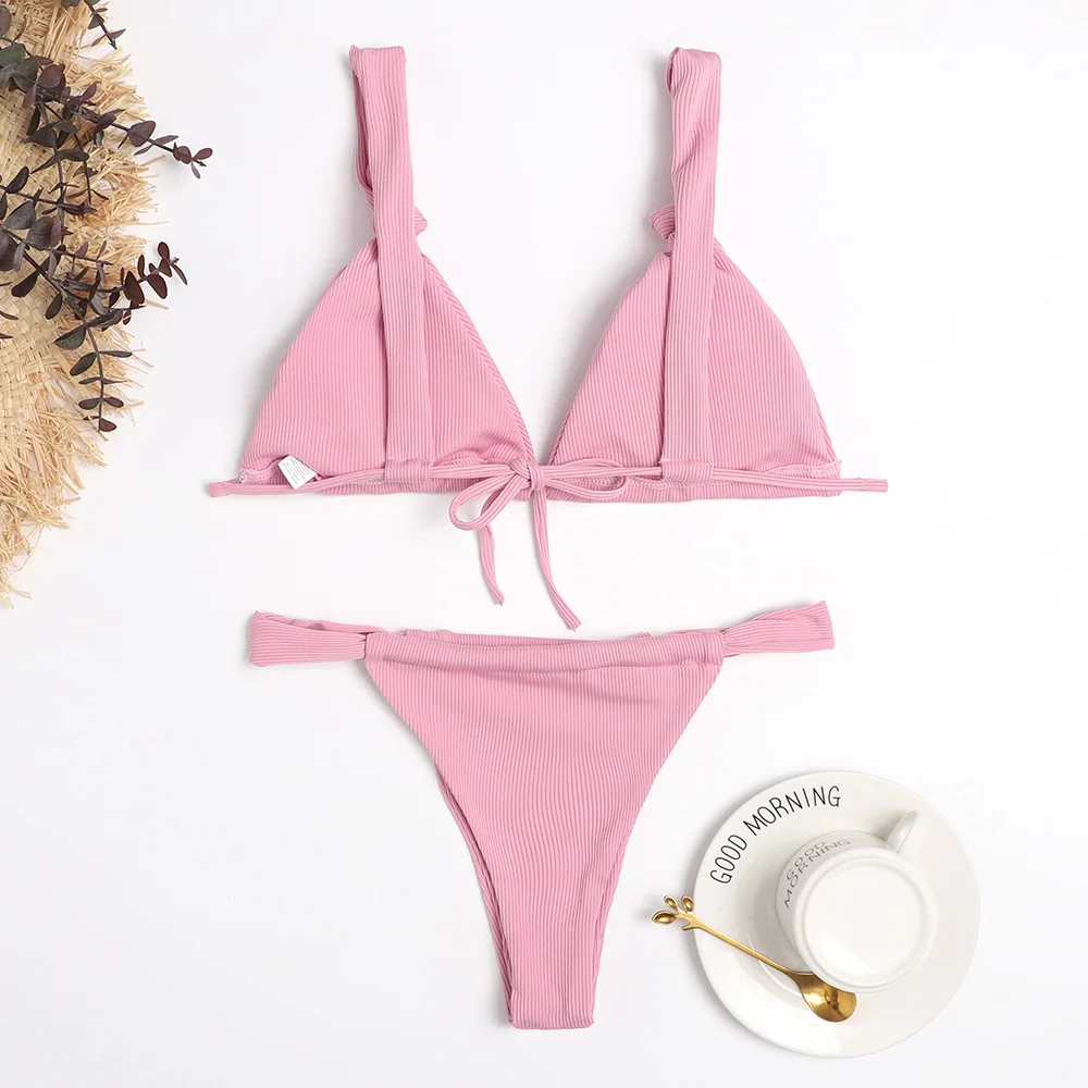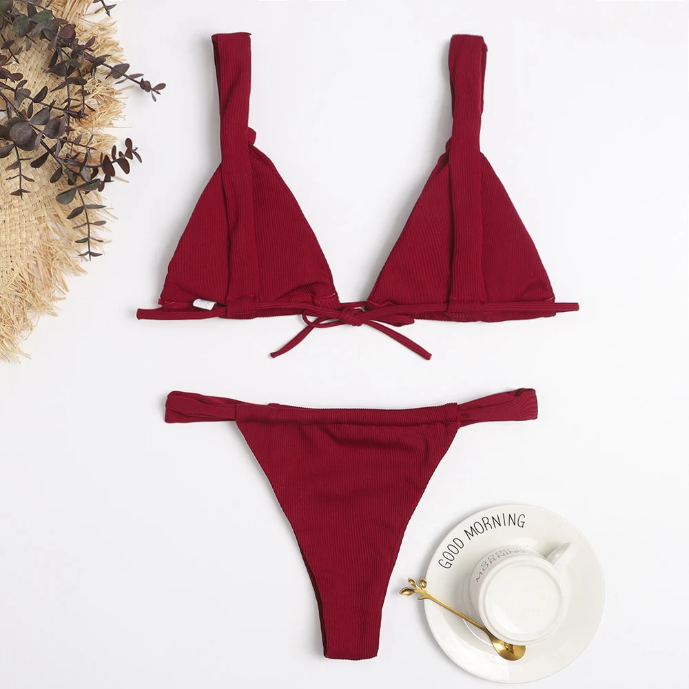 Новинка 2022, женское бикини, однотонное бикини с эффектом пуш-ап, мягкий бюстгальтер на бретелях, купальник с высокой талией, женский купальник, женский костюм бикина