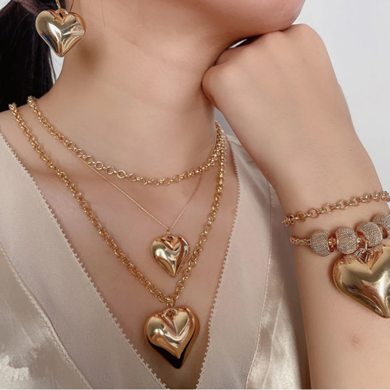 Product nameGold Heart Necklace Earrings Bracelet Set