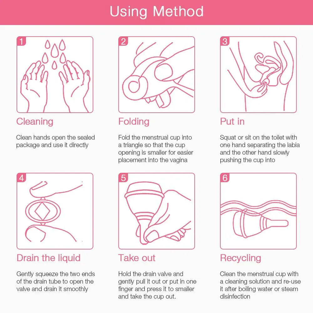 Избегайте менструального дискомфорта:Эта менструальная чаша позволяет избежать неприятных ощущений, таких как сырость, жар, зуд и перкулярный запах при использовании гигиенических салфеток во время менструального периода большого объема.О продукте: