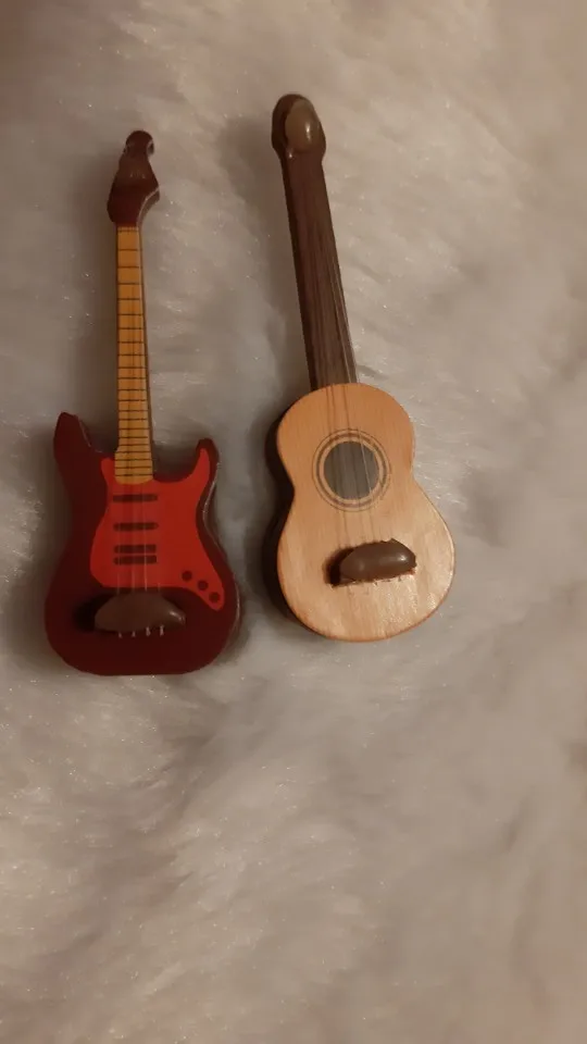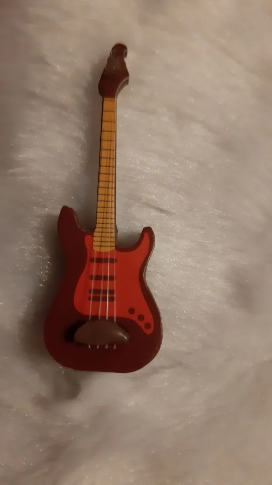 Яркая красная картина, эта кукольная электрогитара очень тонкая работа