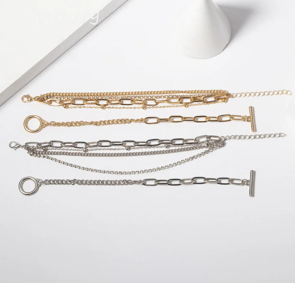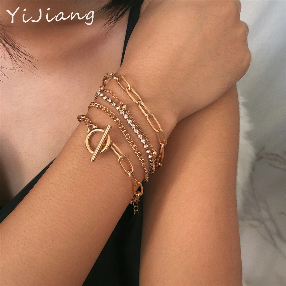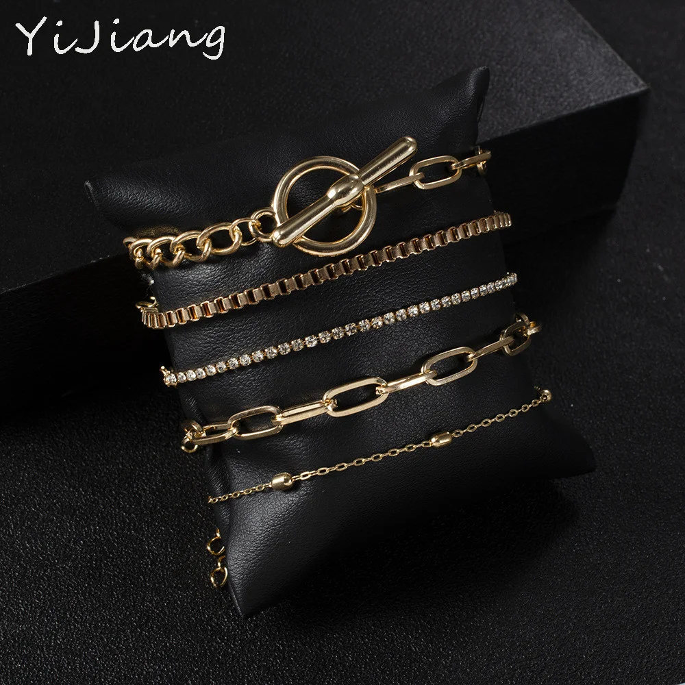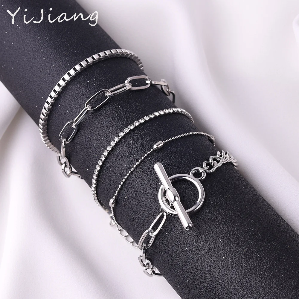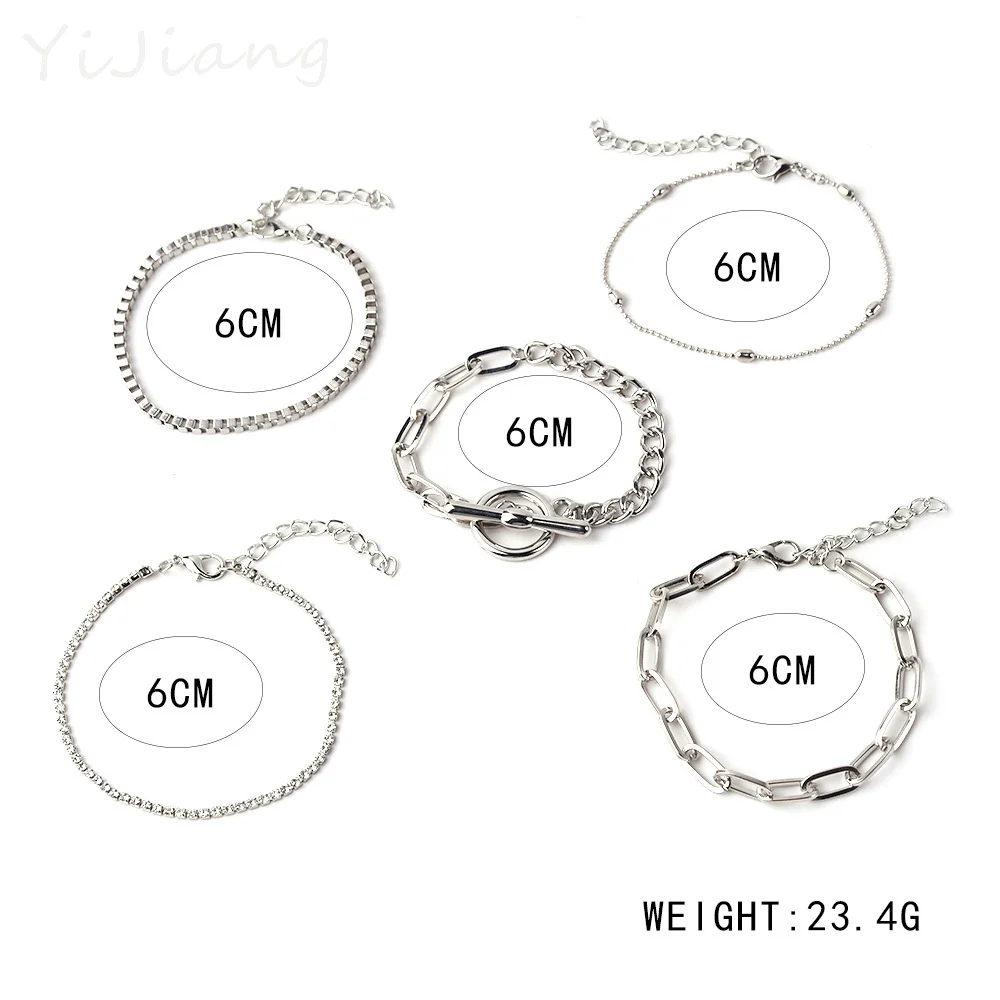 Купите 1 Получите 2 5 шт.лот 18 см серебряные Толстые браслеты-цепочки для женщин богемные элегантные очаровательные сверкающие ювелирные наборы из циркония для вечеринки