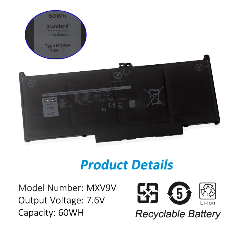 Аккумулятор Kingsener 7,6 в 60 Втч MXV9V для ноутбука Dell Latitude 7300 7400 5300 5310 5300 5310 2-в-1 серии 5VC2M 05VC2M 829MX 0829MX