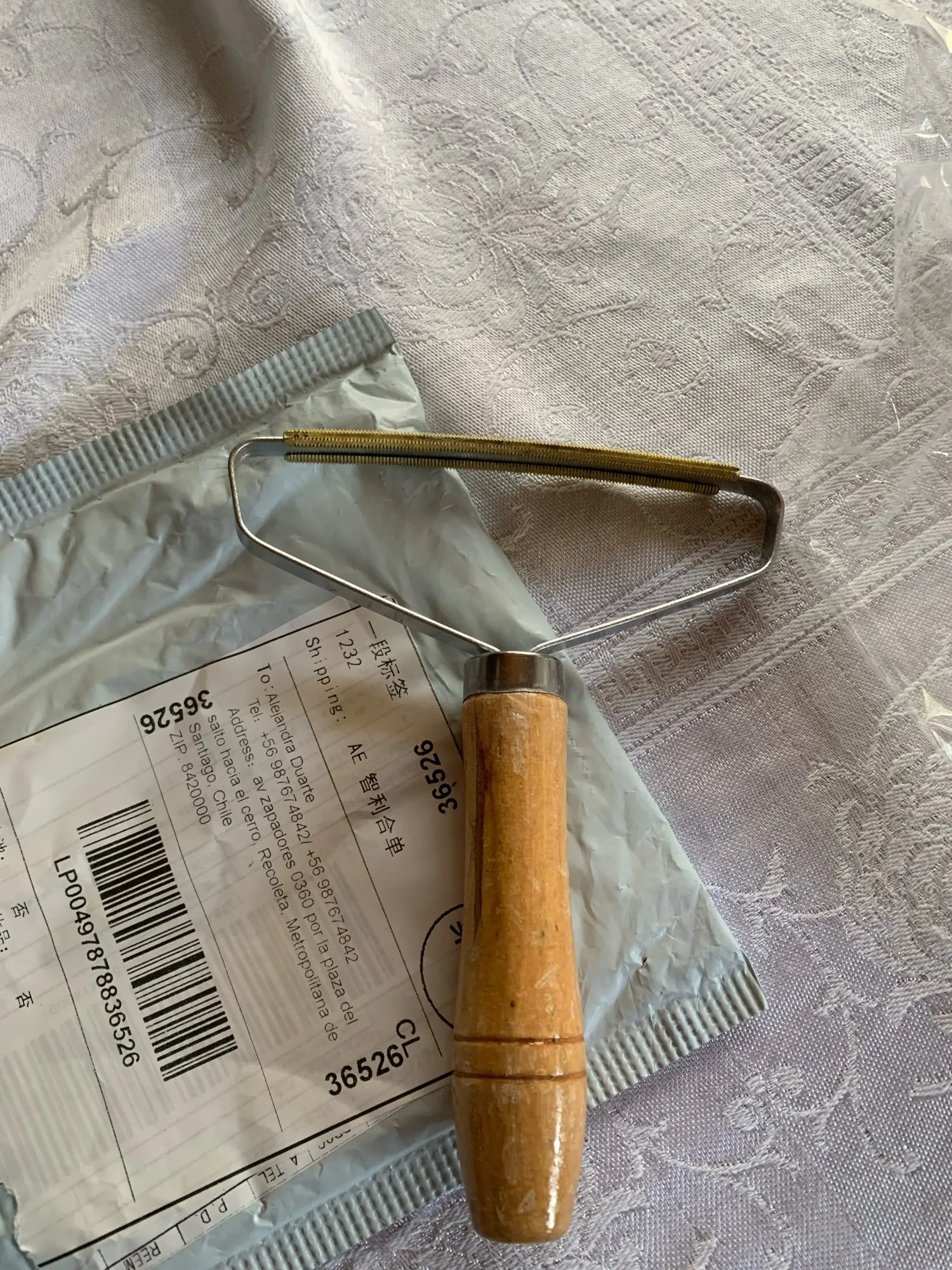 до СПб шло 3 недели не отслеживалось. сама щётка жёсткая с железными зубчиками,деревянная ручка. на фото видно что выскабливает кусочки дивана вместе с шерсть,но это конечно зависит от качества ткани на диване. Где то читала что ещё удаляет каташки с одежды,ну чем больше вязка там она не удаляет а оставляет зацепки,а для мелких катышек слишком большое расстояние между зубчиками. В общем если убирать только шерсть на плотной ткани то супер! Товар рекомендую! Покупала 145.64р