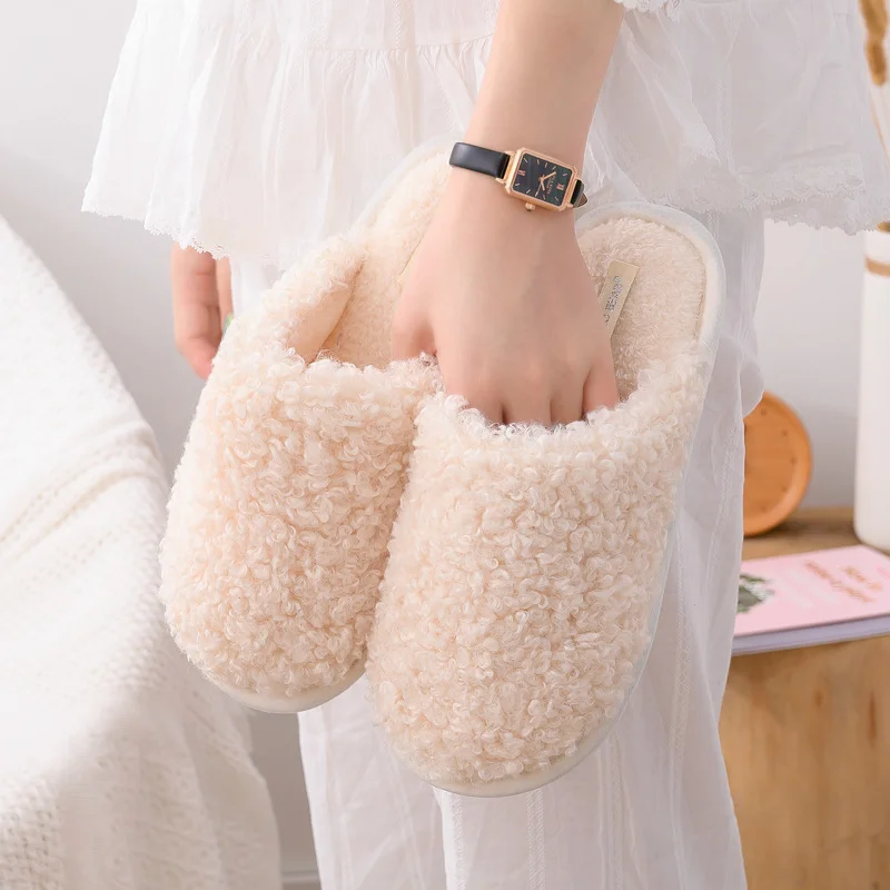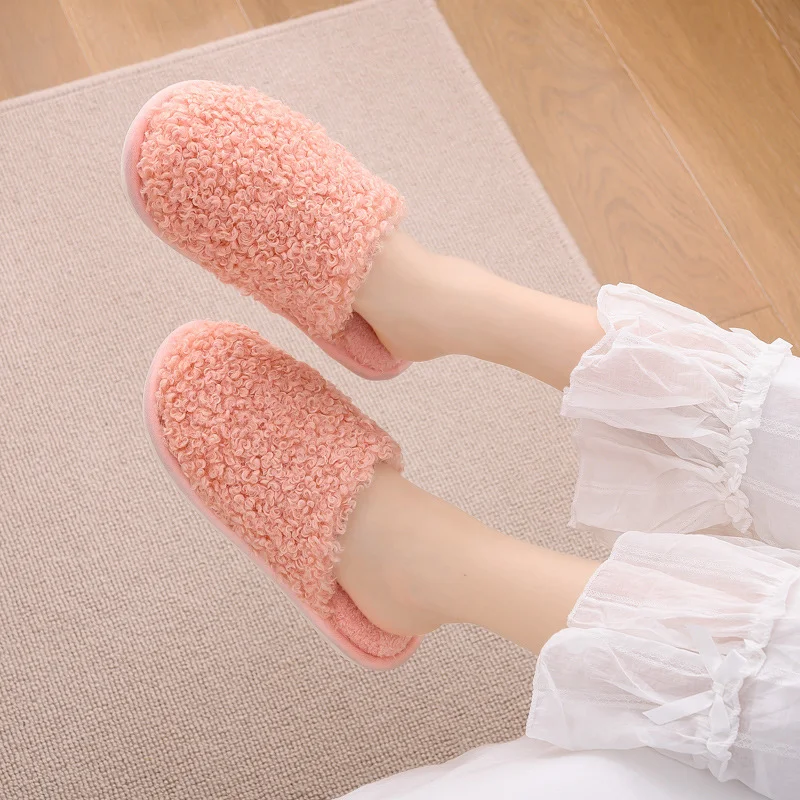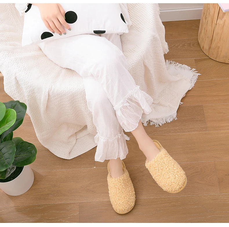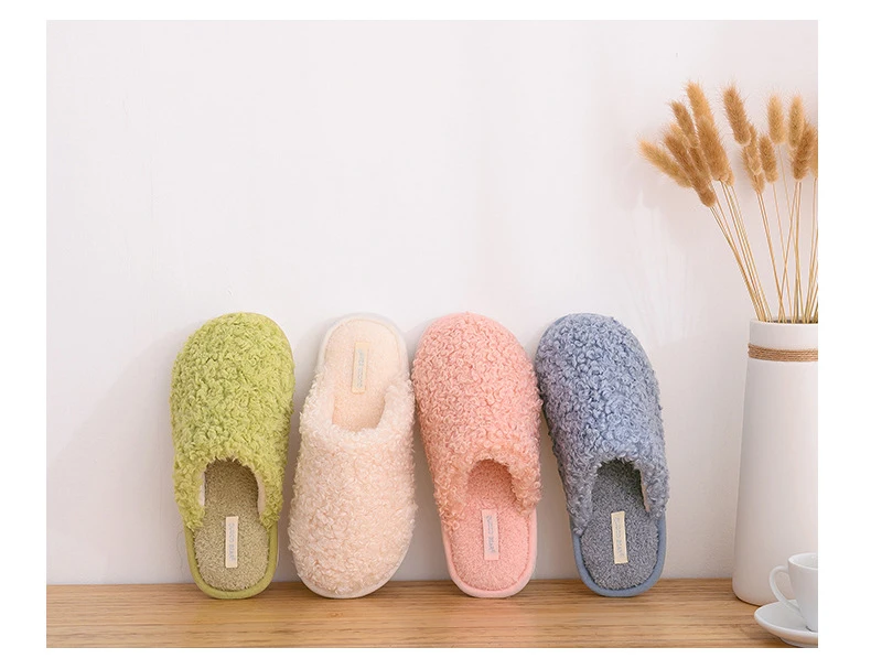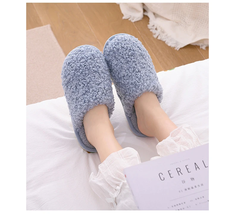 Зимние теплые короткие плюшевые домашние тапочки на плоской подошве, нескользящая подошва, закрывающие Носок, однотонная повседневная женская обувь, милая удобная женская обувь