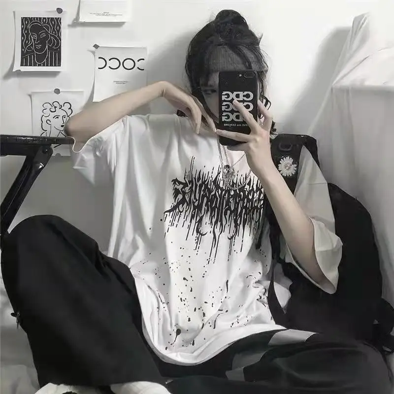 Футболка женская оверсайз с коротким рукавом, Готическая винтажная уличная одежда с графическим принтом в стиле Харадзюку, летняя