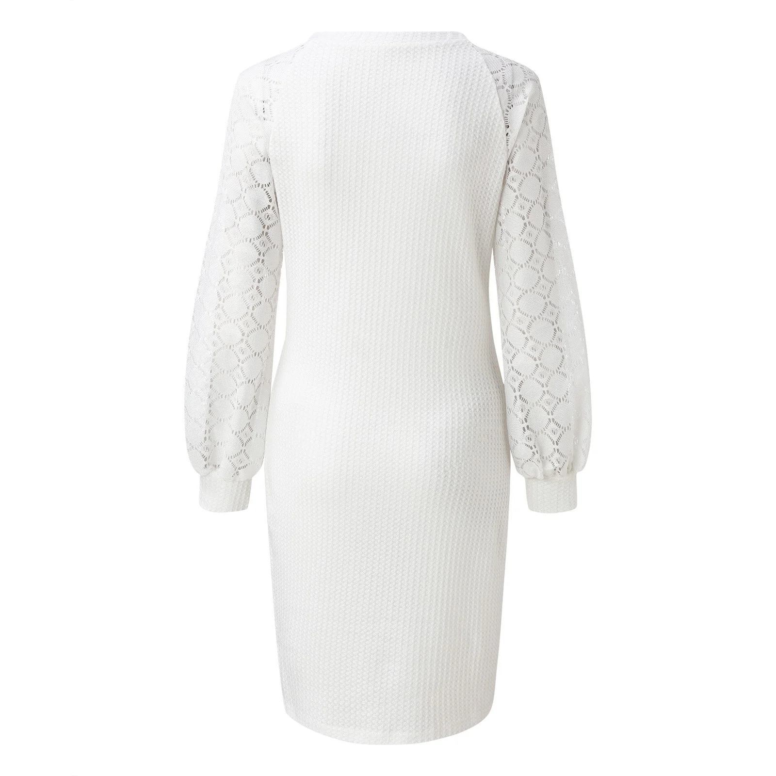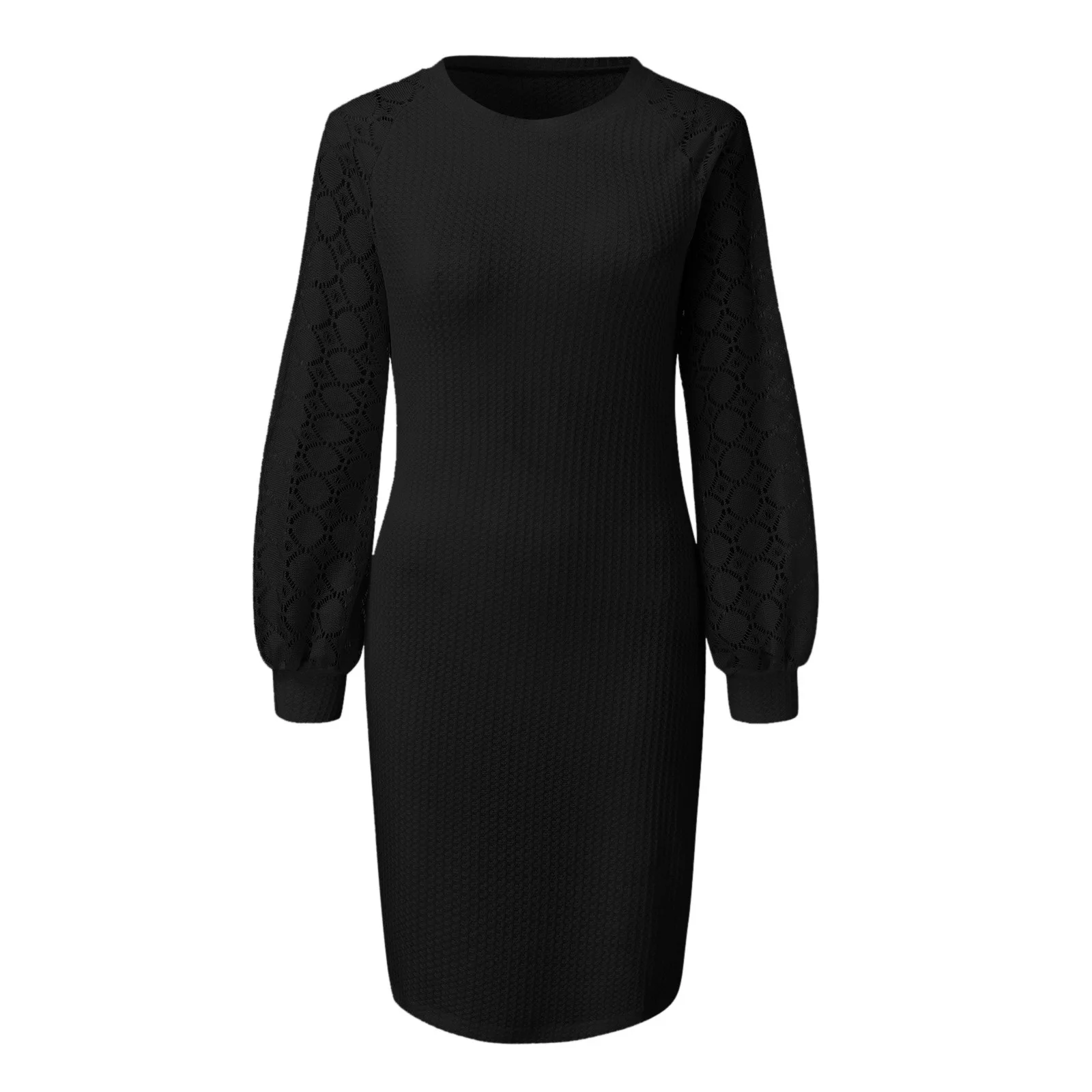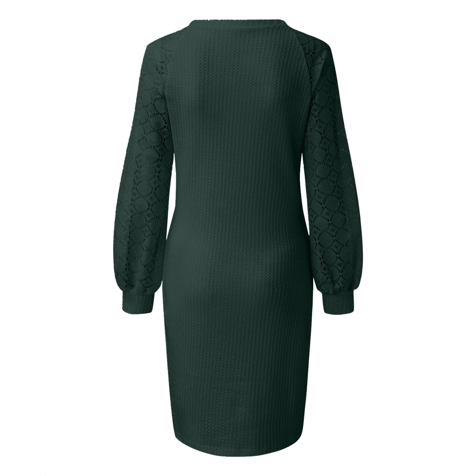 Женское кружевное повседневное свободное трикотажное платье с длинным рукавом
