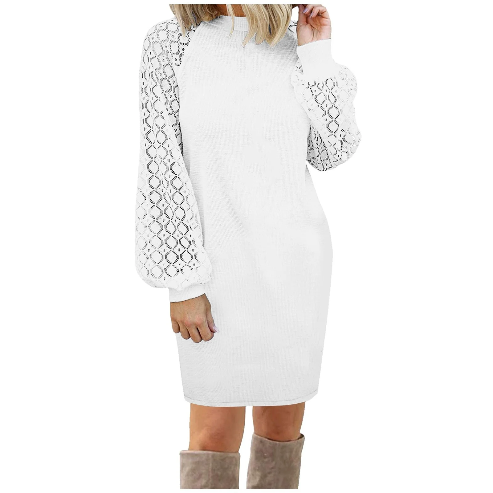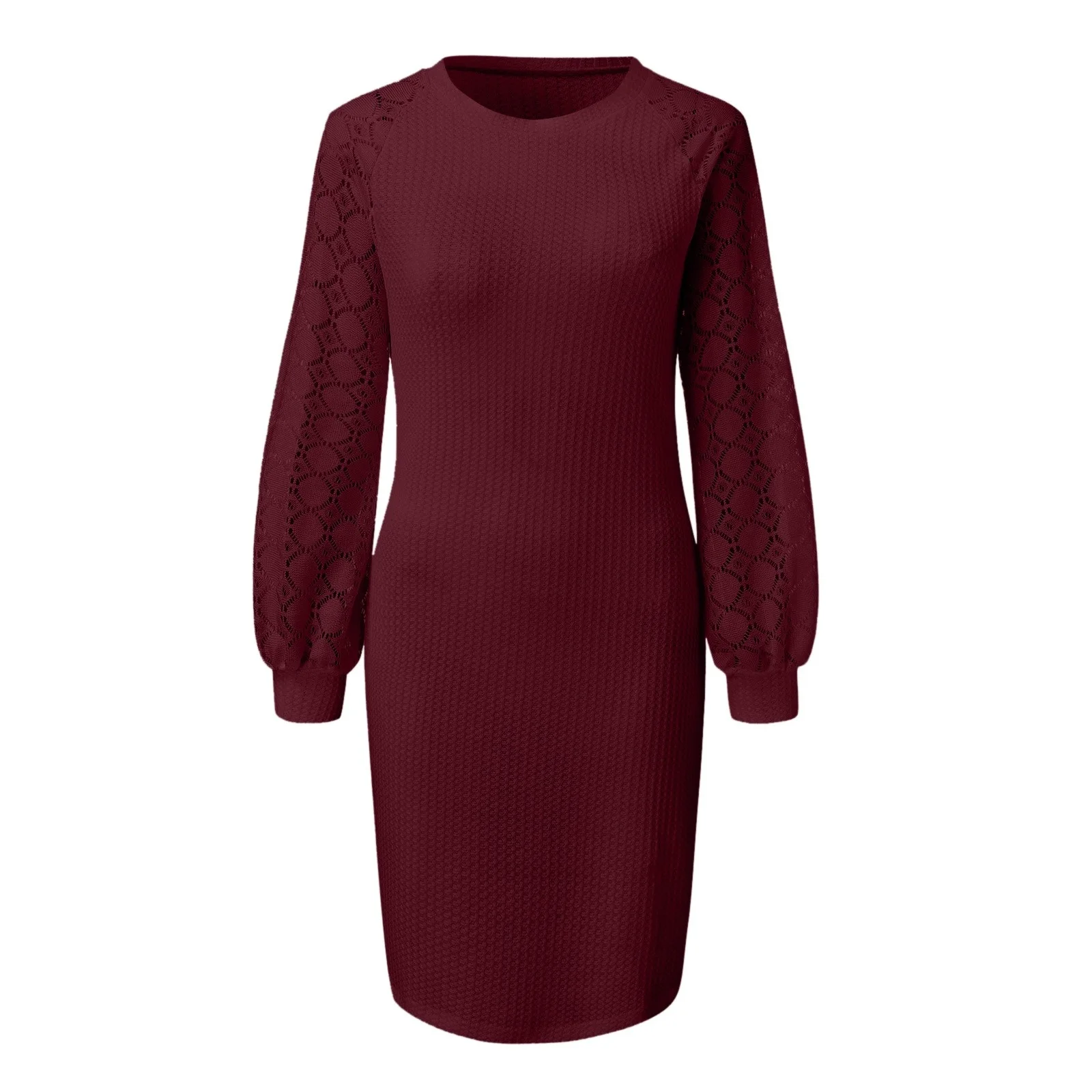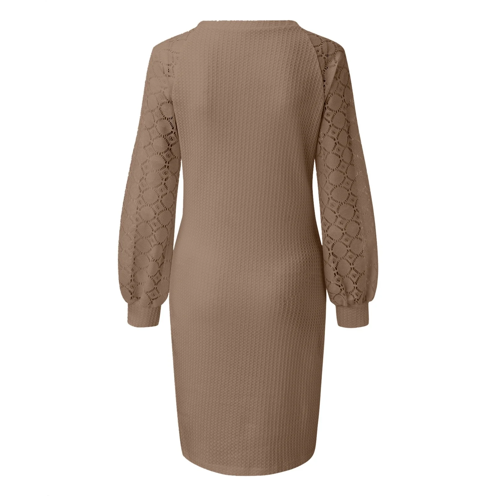 Женское кружевное повседневное свободное трикотажное платье с длинным рукавом