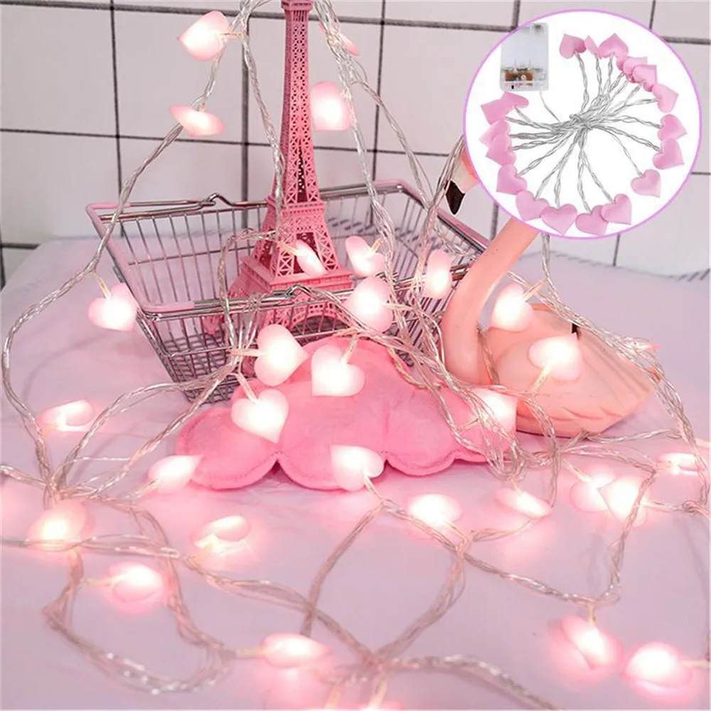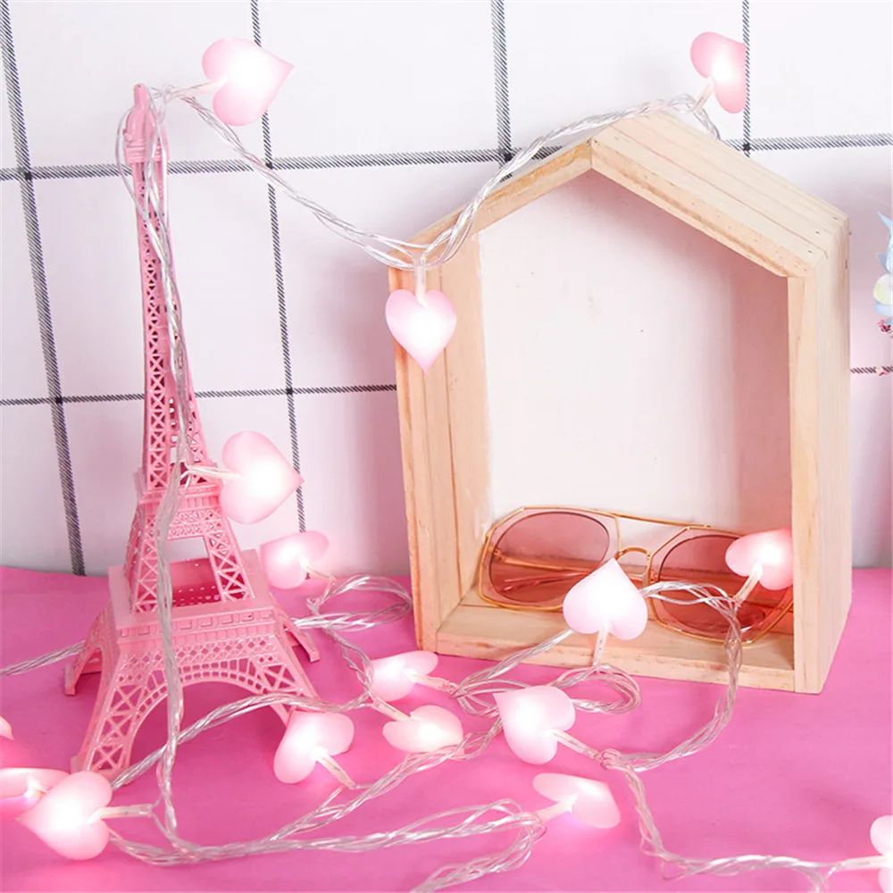 Светодиодная гирлянда из хлопка с сердечками для свадьбы, Сказочная гирлянда с розовыми и фиолетовыми сердечками для девушек, гирлянда для помещений, декор для свадьбы, вечеринки, сада, Дня Святого Валентина
