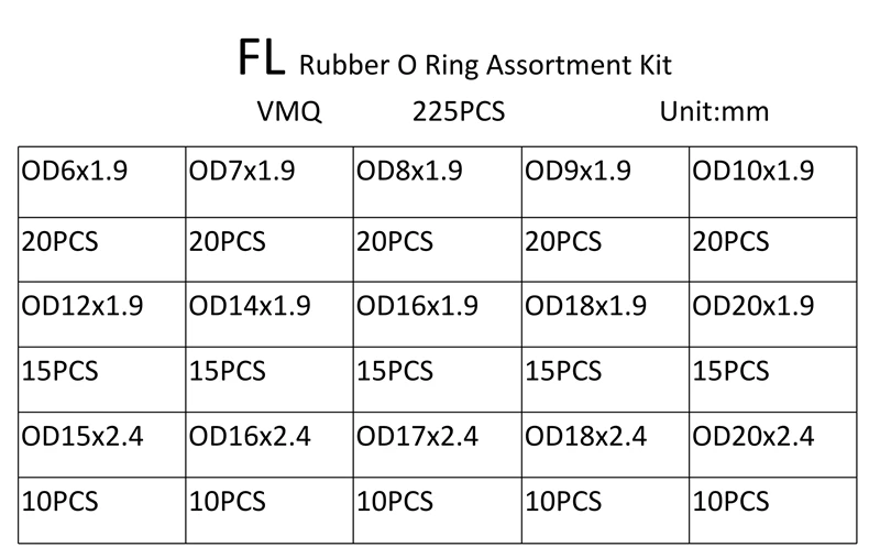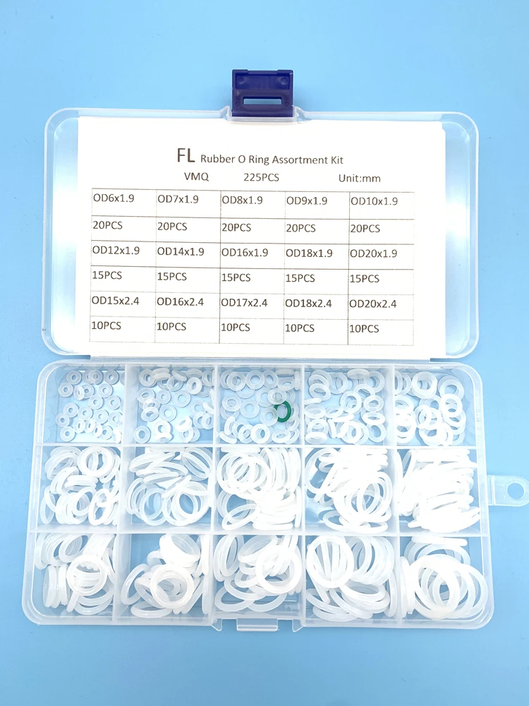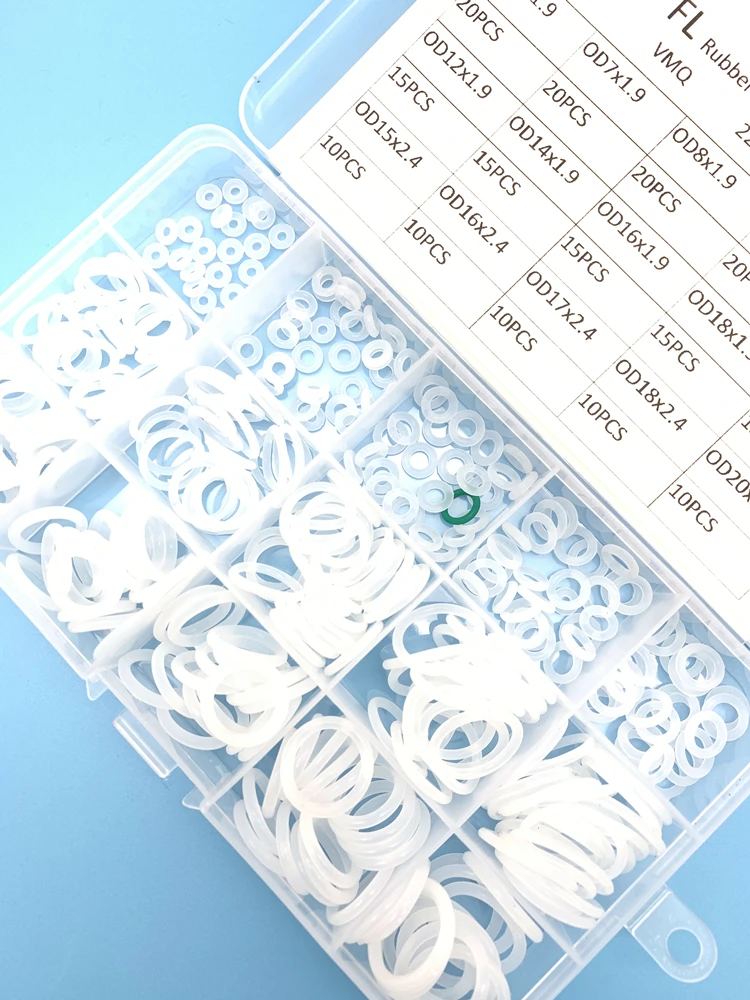 1 коробка 225 шт. уплотнительные кольца из белого силикона VMQ уплотнительные кольца силиконовая шайба резиновый набор уплотнительных колец набор в ассортименте Коробка кольцо