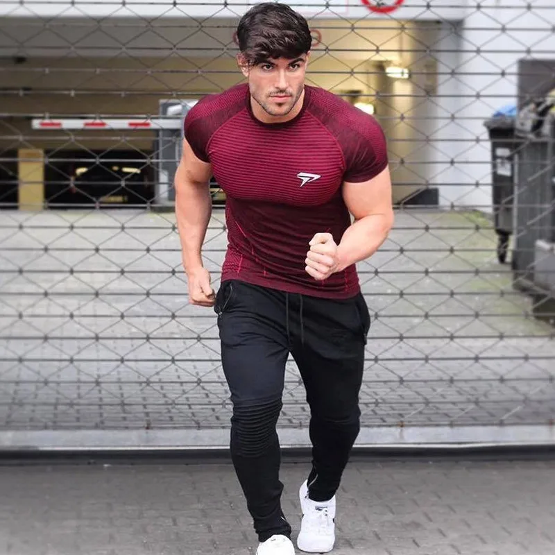 Новинка 2021, Мужская облегающая Спортивная футболка для бега, компрессионная быстросохнущая футболка, мужские футболки для тренажерного зала, фитнеса, бодибилдинга, бега, топы, одежда