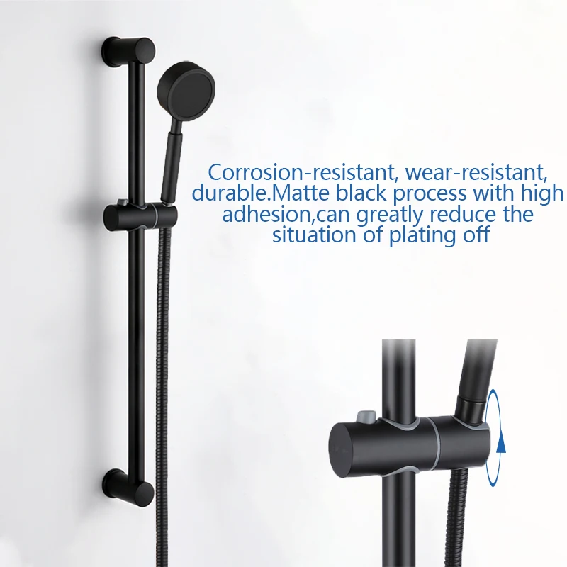 Настенный душевой набор с черным покрытием и шлангом из нержавеющей стали высокого давления