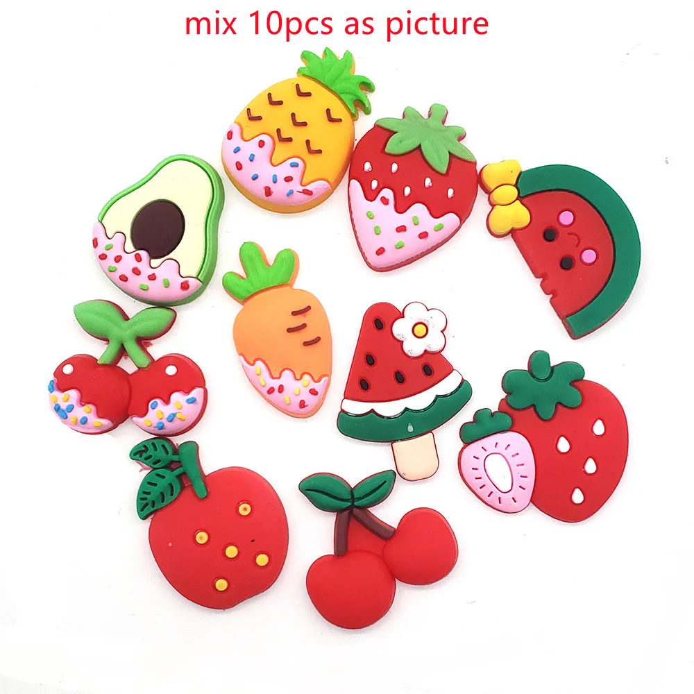 10 шт. Мультяшные сердца фрукты Детские серии ПВХ JIBZ Кроксы шармы аксессуары сделай сам сабо сандалии садовые украшения обуви Детский Рождественский подарок