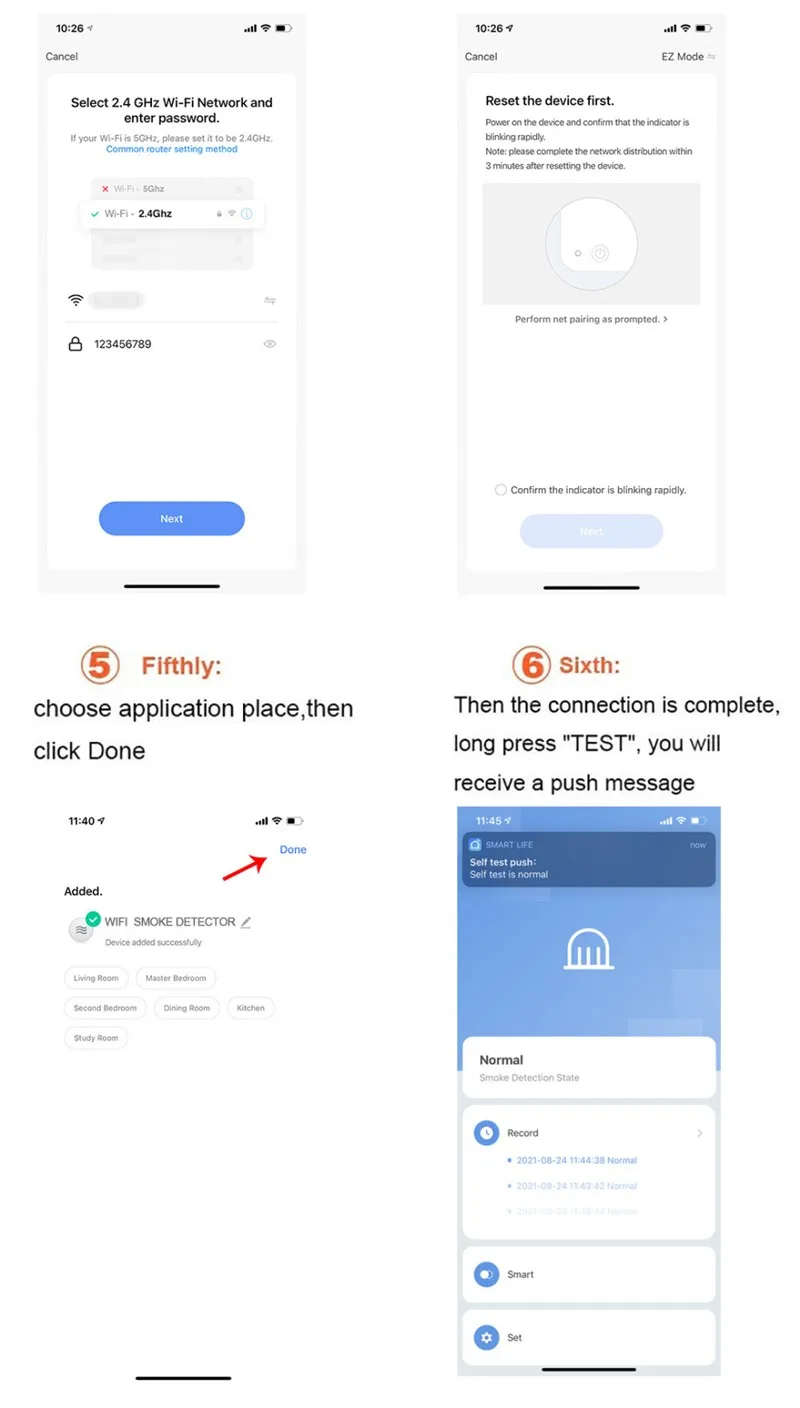 Этот продукт является умным WIFI фотоэлектрическим датчиком дыма. Он способен в режиме реального времени обнаруживать наличие дыма. После обнаружения опасности пожарного дыма, красный светодиодный датчик будет включен, иТревожит Вас и Вашу семью вовремя.Его можно широко использовать в домашнем хозяйстве, гостиной, кофейне, танцевальном зале и в любых других местах, где требуется мониторинг пожарной сигнализации. (Такой датчик не может обнаруживать газ/тепло/огонь.)