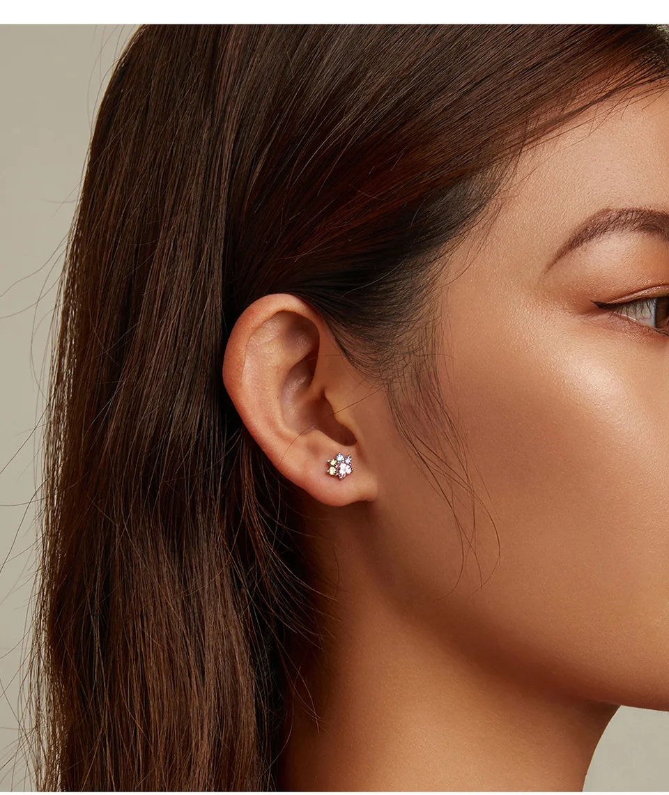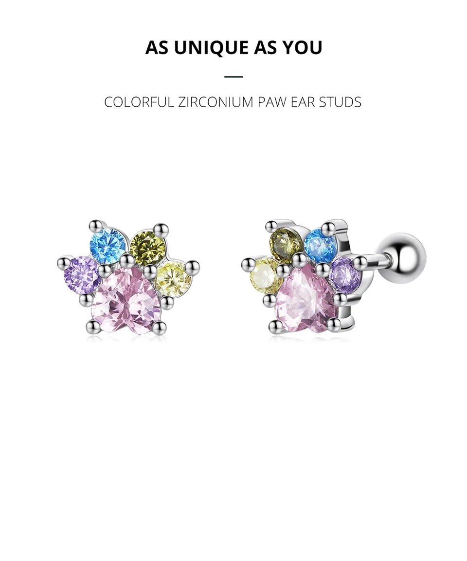 Женские серьги-пусеты Bamoer из настоящего серебра 925 пробы с разноцветными циркониевыми лапы уши, Изящные Ювелирные изделия, подарки