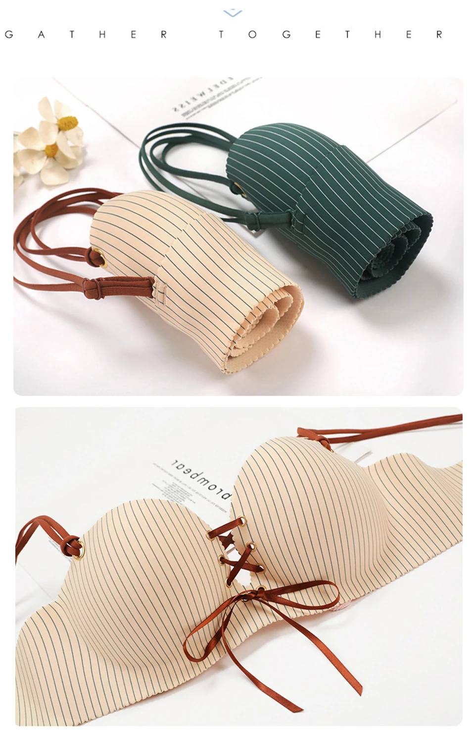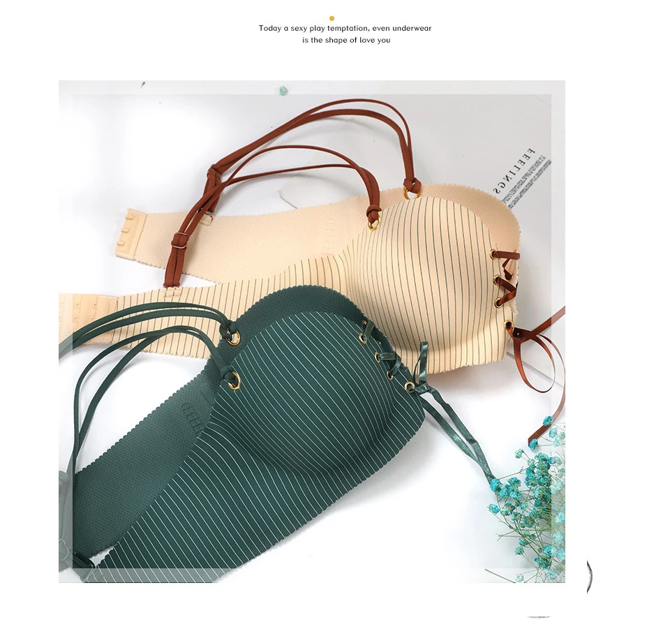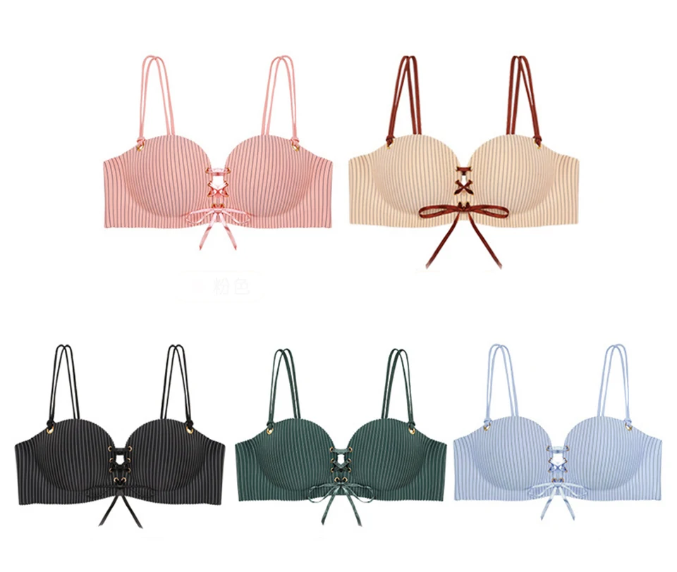 Женский бесшовный бюстгальтер, Полосатое нижнее белье пуш-ап, без к...
