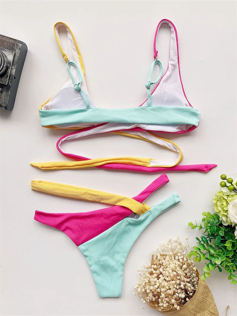 Комплект бикини женский из двух предметов, пикантный Асимметричный купальник, купальная одежда, Бразильская пляжная одежда