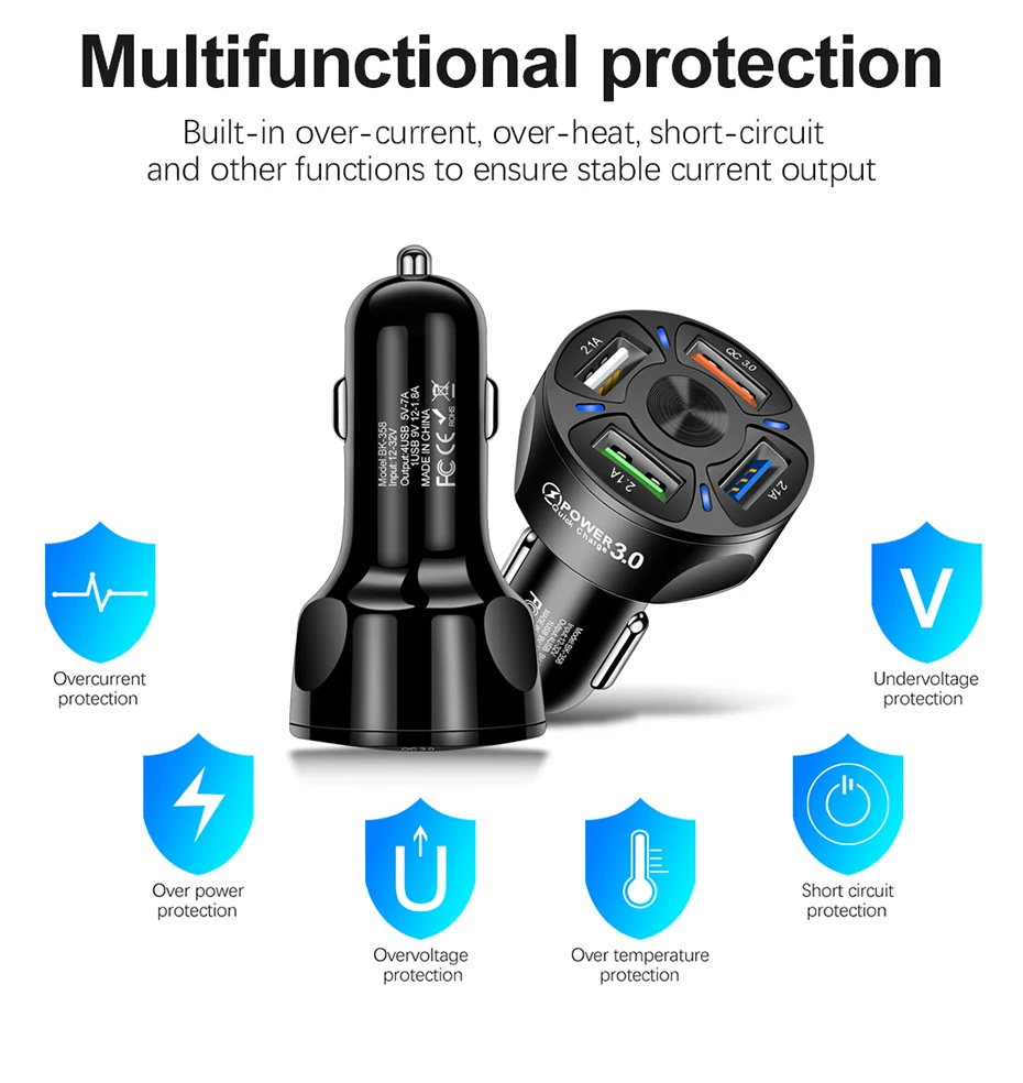 Автомобильное зарядное устройство с 4 USB-портами, быстрая зарядка ...