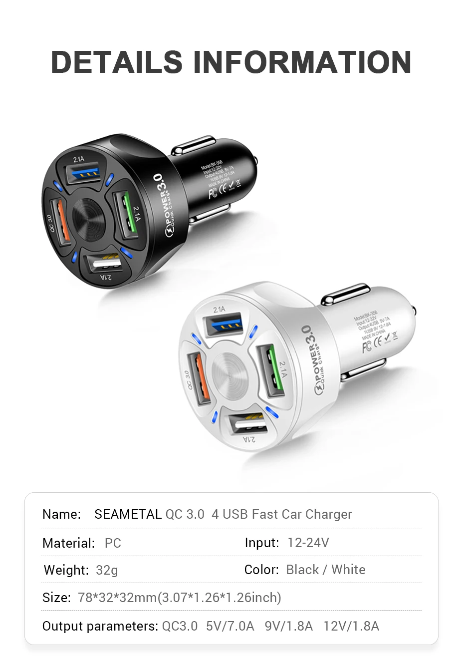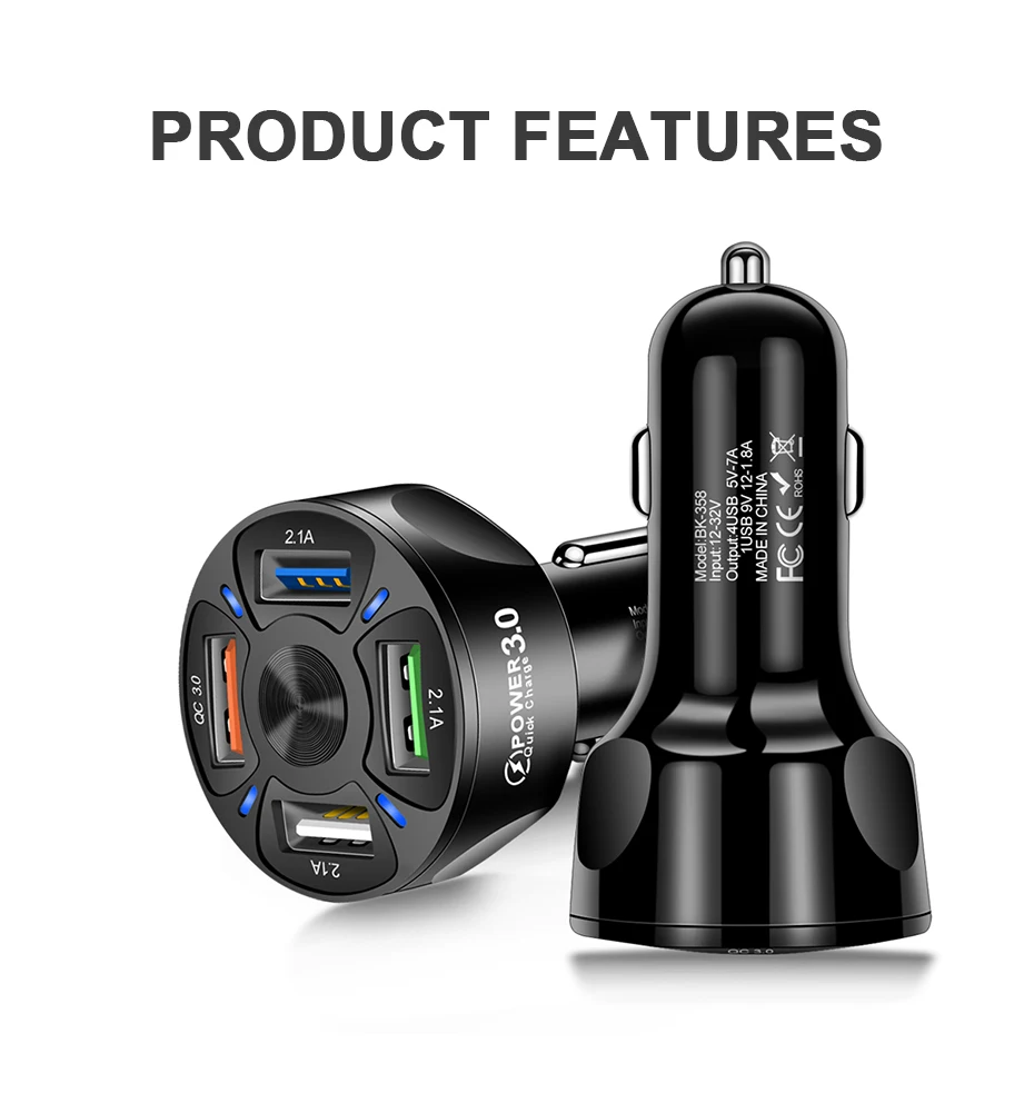 3A QC3.0 4USB Автомобильное зарядное устройство для быстрой зарядки