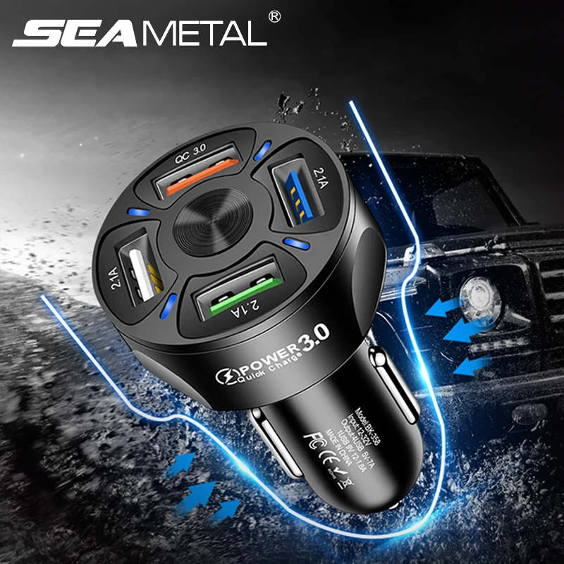Автомобильное зарядное устройство с 4 USB-портами, 48 Вт, 4,0, 3,0