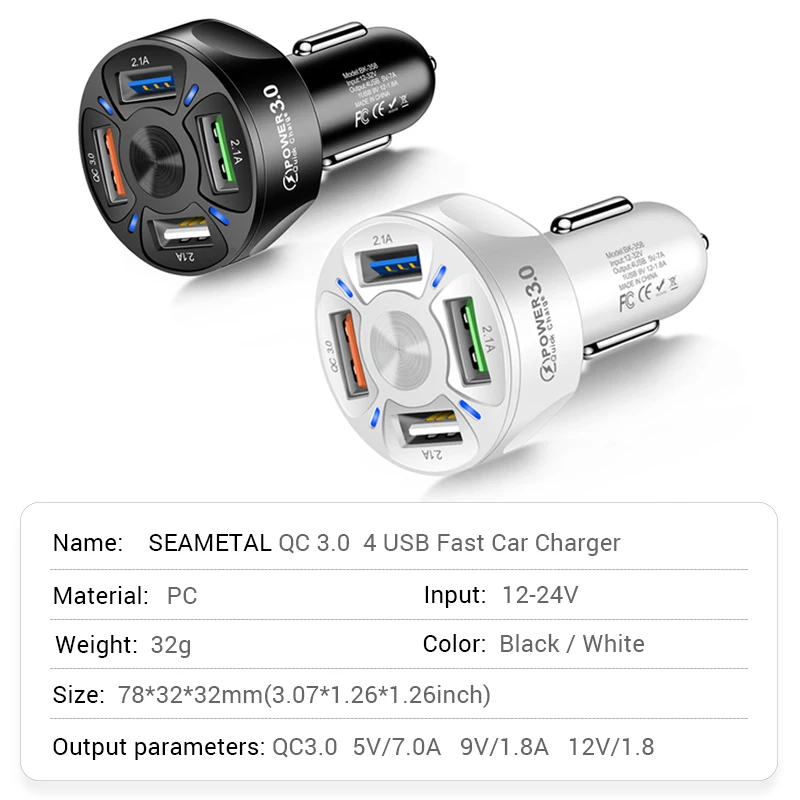 4 порта USB QC 3,0 быстрое автомобильное зарядное устройство для со...