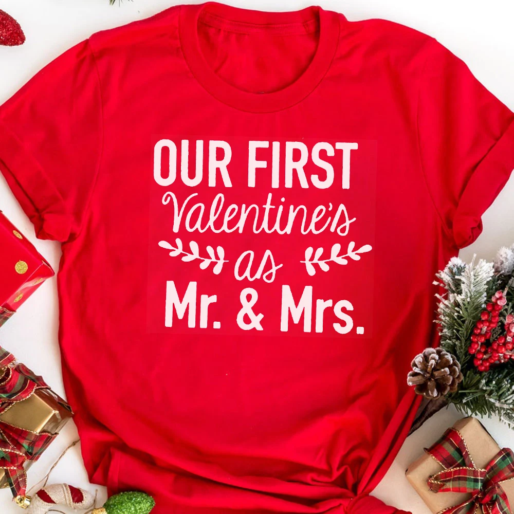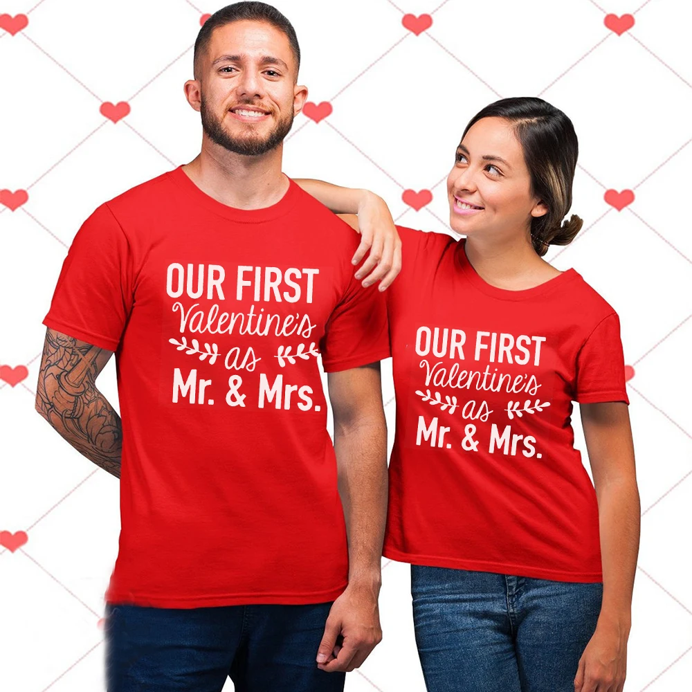 Женские и мужские футболки с надписью First Valentines As Mr и Mrs