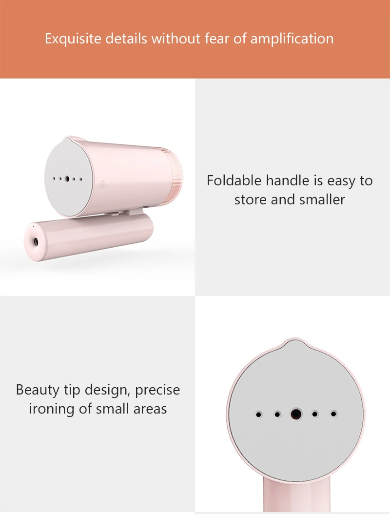 Изысканные детали, не боясь усиленияСкладная ручка легко хранить и меньшеКрасивый дизайн наконечника, точная глажка небольших зонСветильник индикатора напоминает нам постоянно отображать рабочее состояниеСъемный резервуар для воды более удобен для впрыска воды