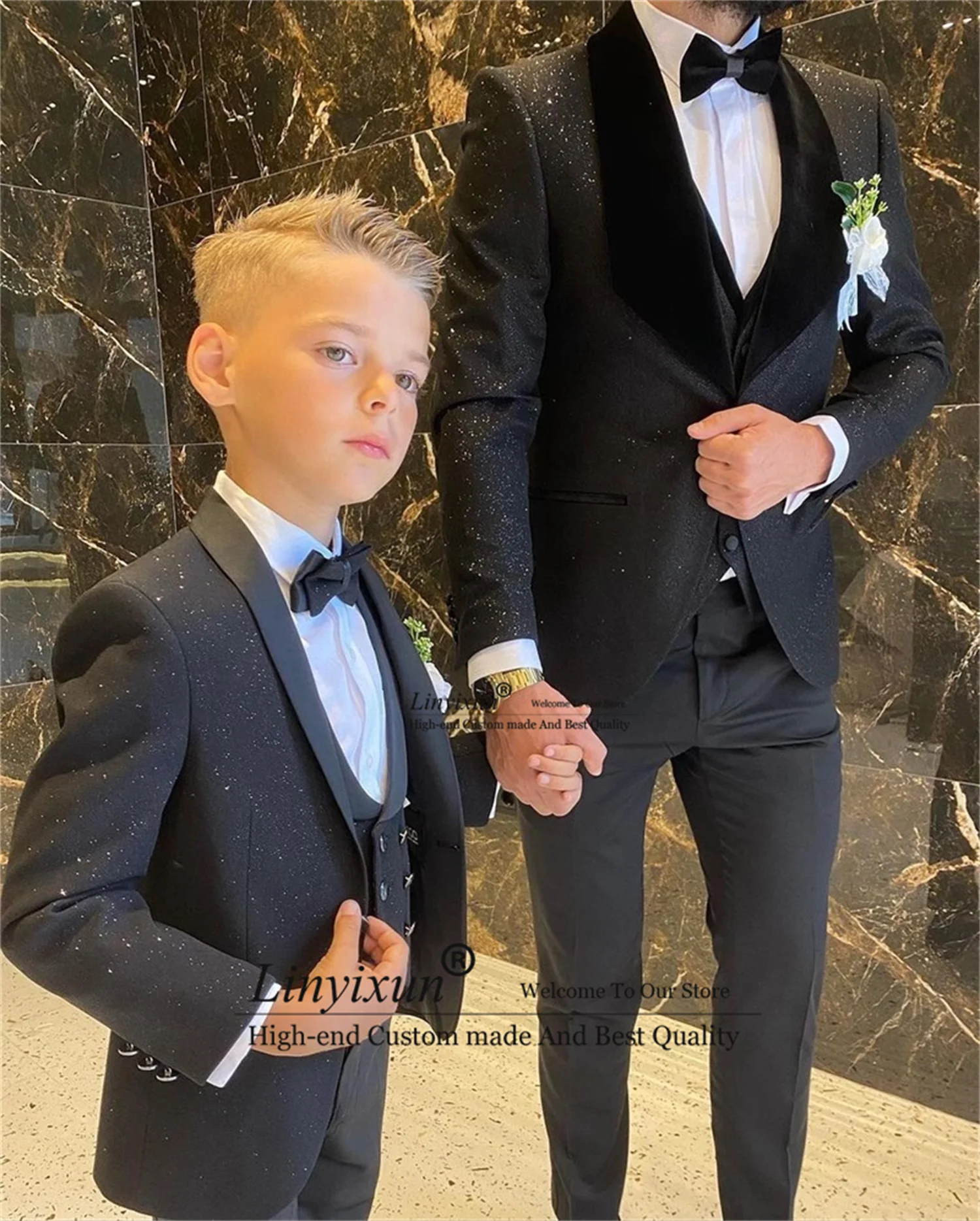 Блестящие мужские костюмы с шалью и лацканами, мужской комплект из трех предметов, мужской блейзер для выпускного вечера, мужские костюмы для Отца и Сына, детские костюмы