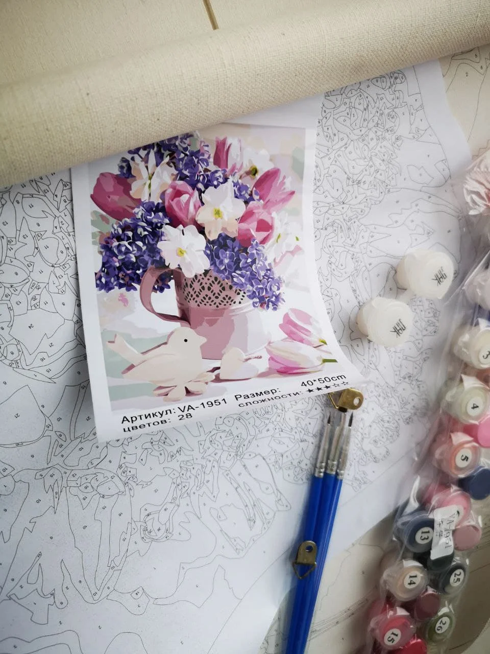 Искусственная роспись по номерам, цветы 40x50 см для взрослых, иску...