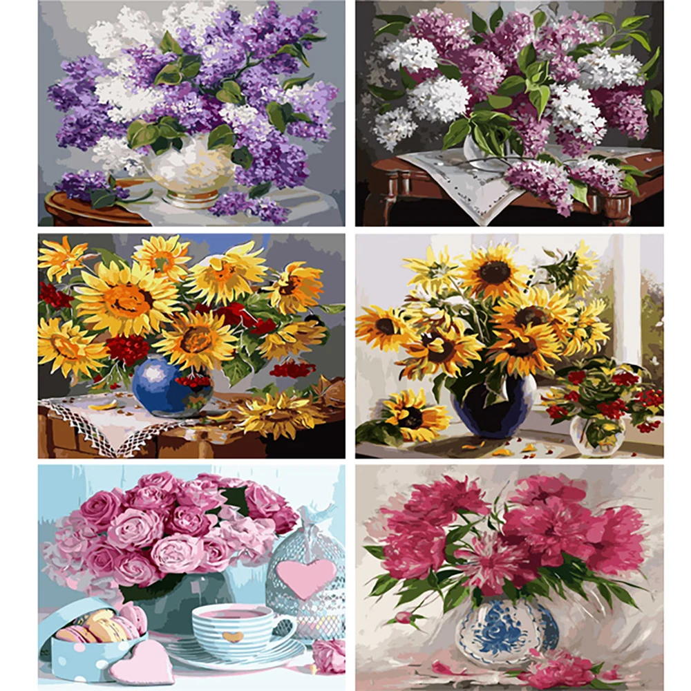 VA-0339 Раскрашивание по номерам цветы цветение пейзаж DIY Раскраши...
