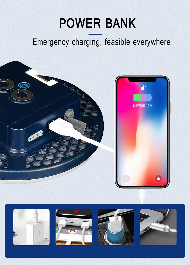 3 Key Words :Fishing Lamp/ Campfire / power bank