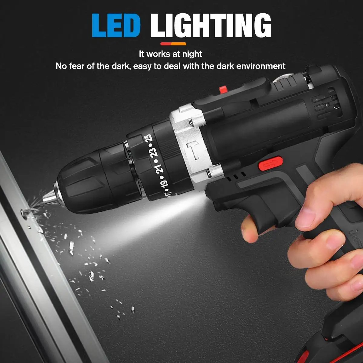 Электрическая дрель три функции с ударом 6000mAh 21V два заряда или Одна зарядка