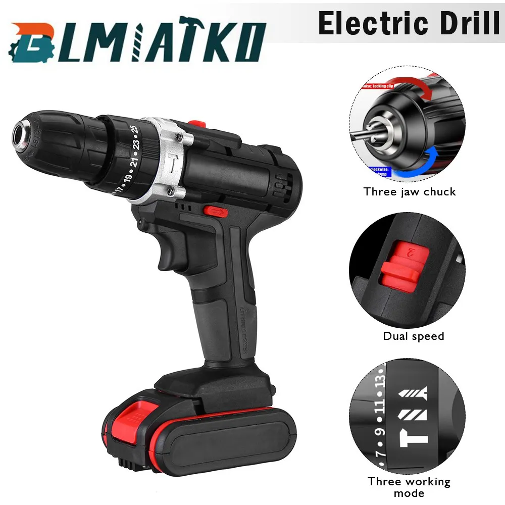 Электродрель и отвертка BLMIATKO 48 в 3 в 1, 2 скорости, 25 + 3 турских инструмента, Аккумулятор 6000 мАч, аксессуары для дрели
